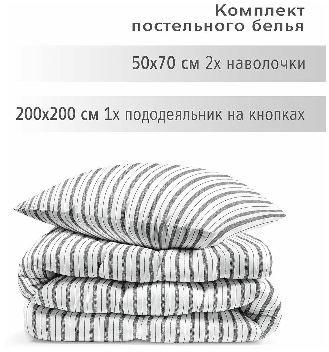 Комплект постельного белья, 2 спальный YERRNA, наволочки 50х70 2шт, перкаль, серый, с2082шв/211912