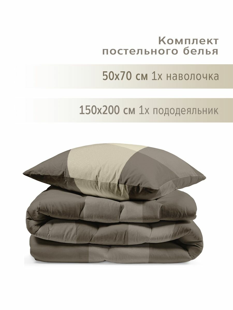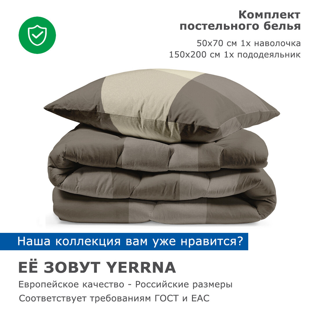 Купить Комплект постельного белья 1 спальный YERRNA, наволочка 50х70 1шт, перкаль, серо-бежевый, с2081шв/213432
