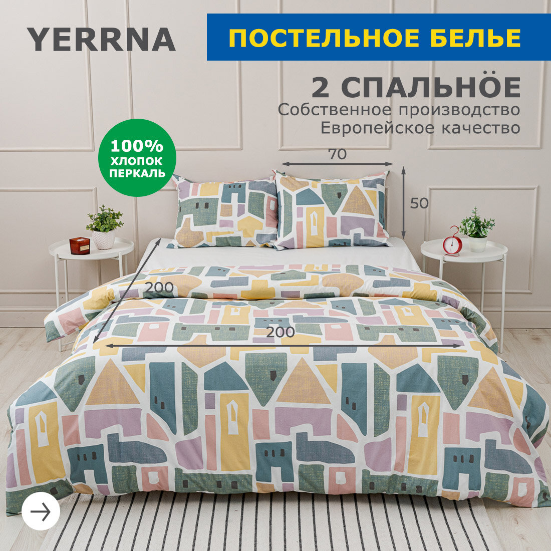 Купить Комплект постельного белья, 2 спальный YERRNA, наволочки 50х70 2шт, перкаль, разноцветный, с2082шв/97512