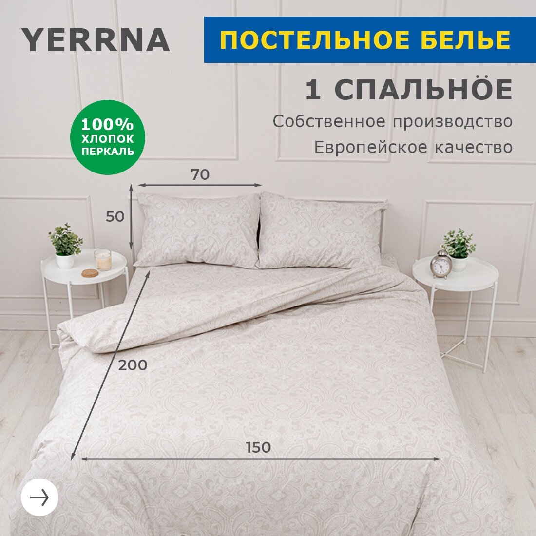 Комплект постельного белья 1 спальный YERRNA, наволочка 50х70 1шт, перкаль