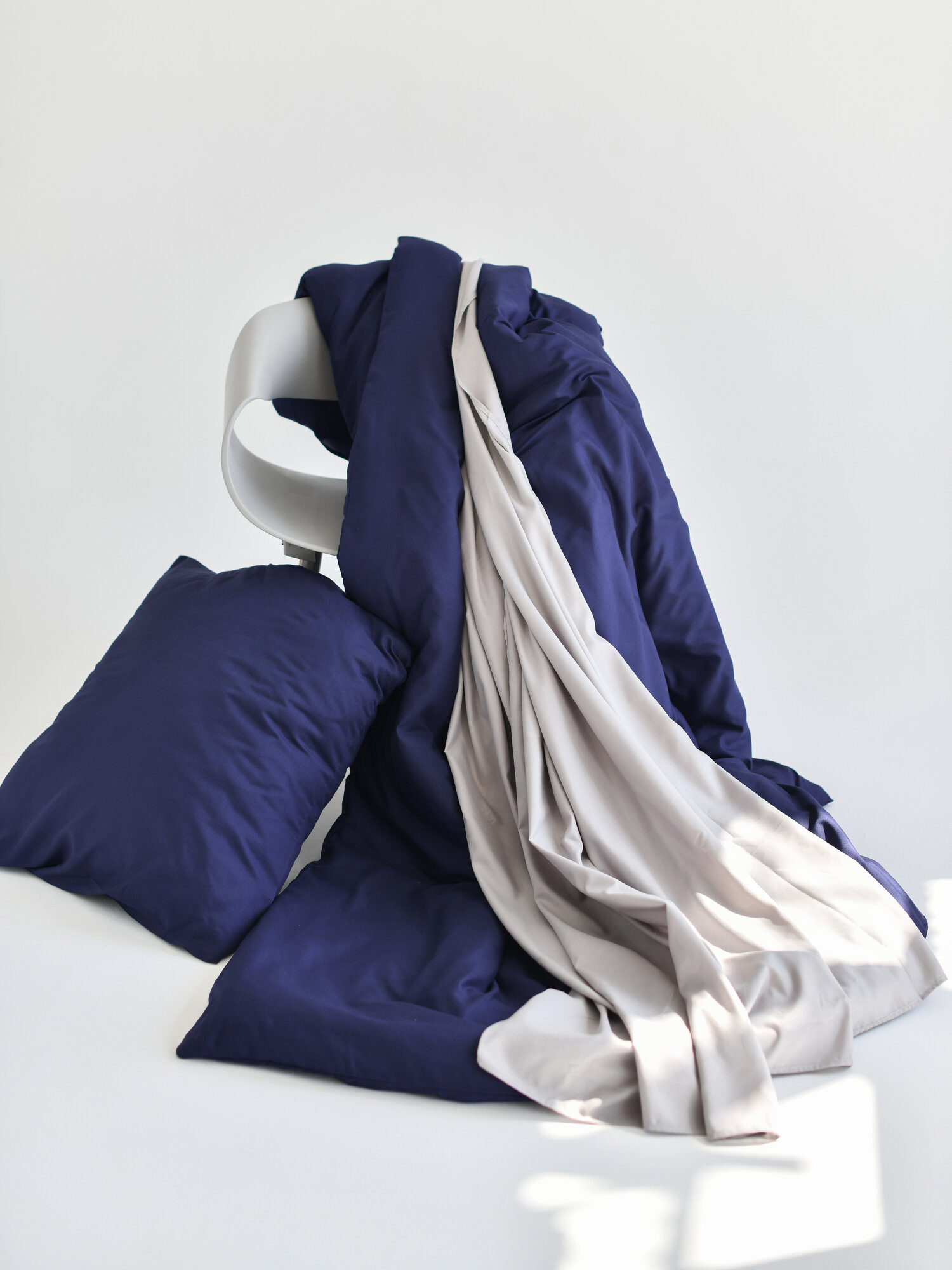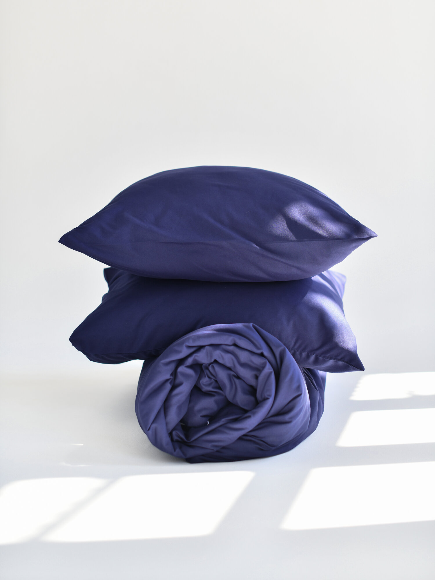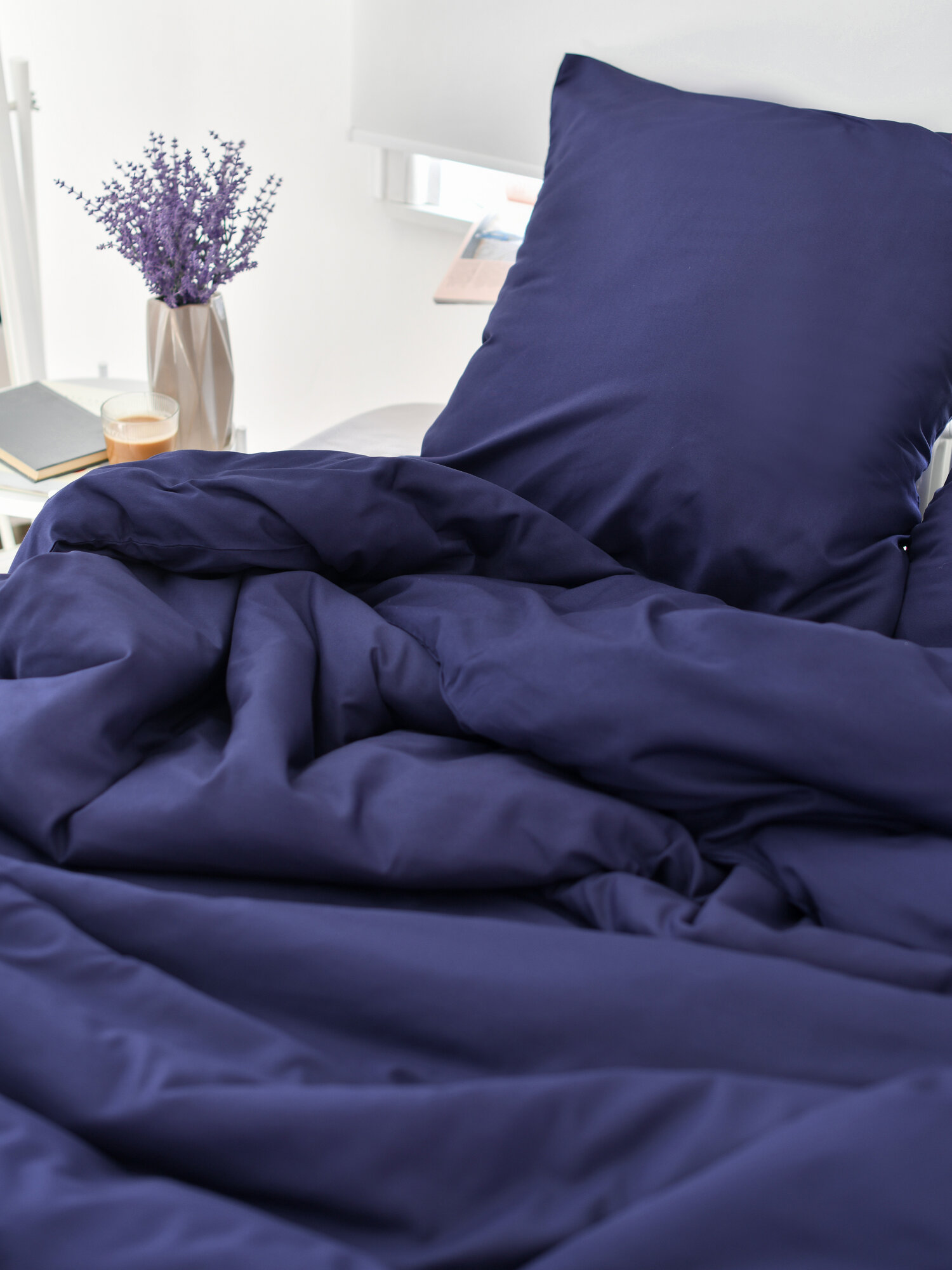 Постельное белье евро Павлина Манетти полисатин однотонный, (темно-синий/серый) S32