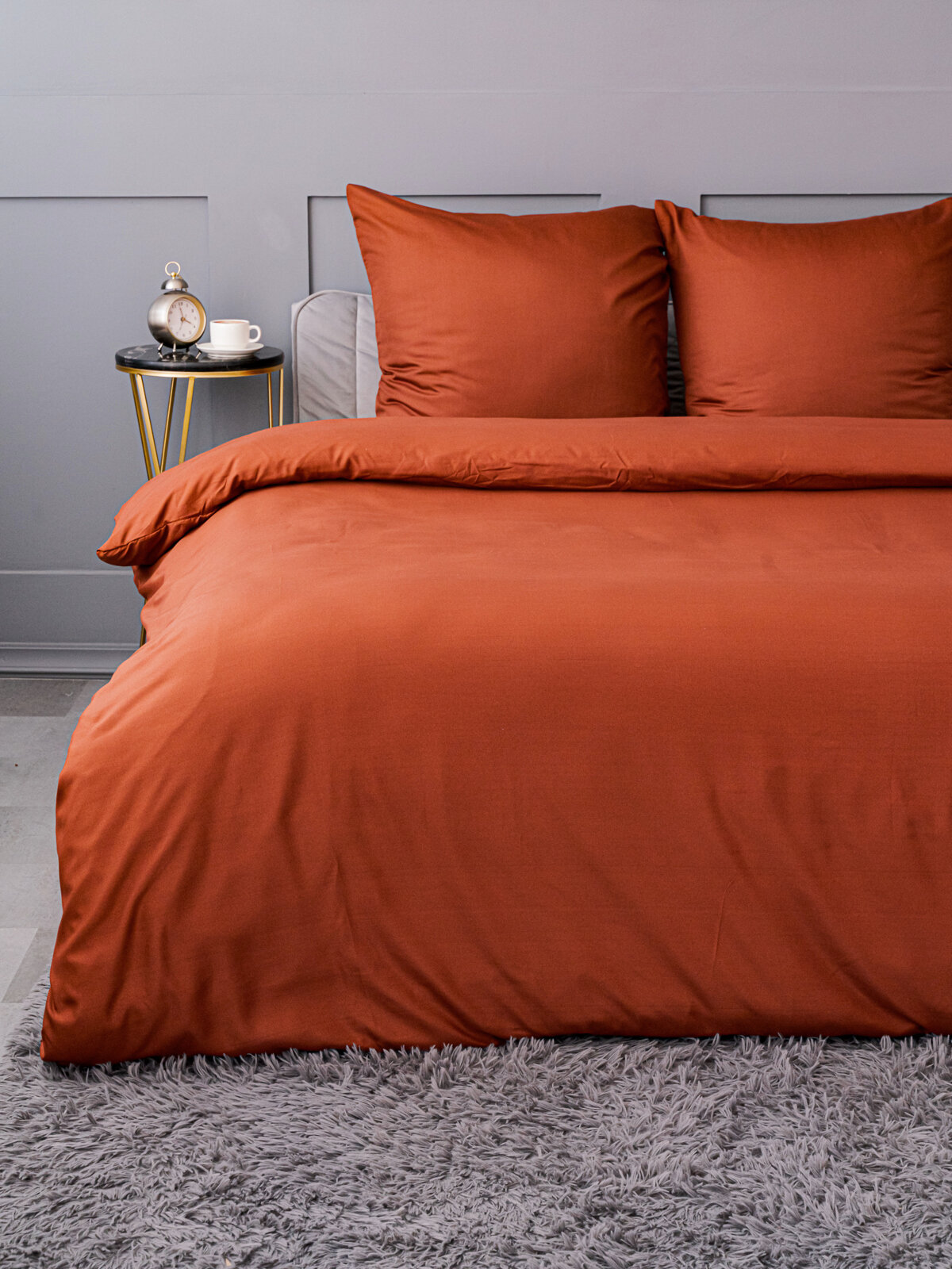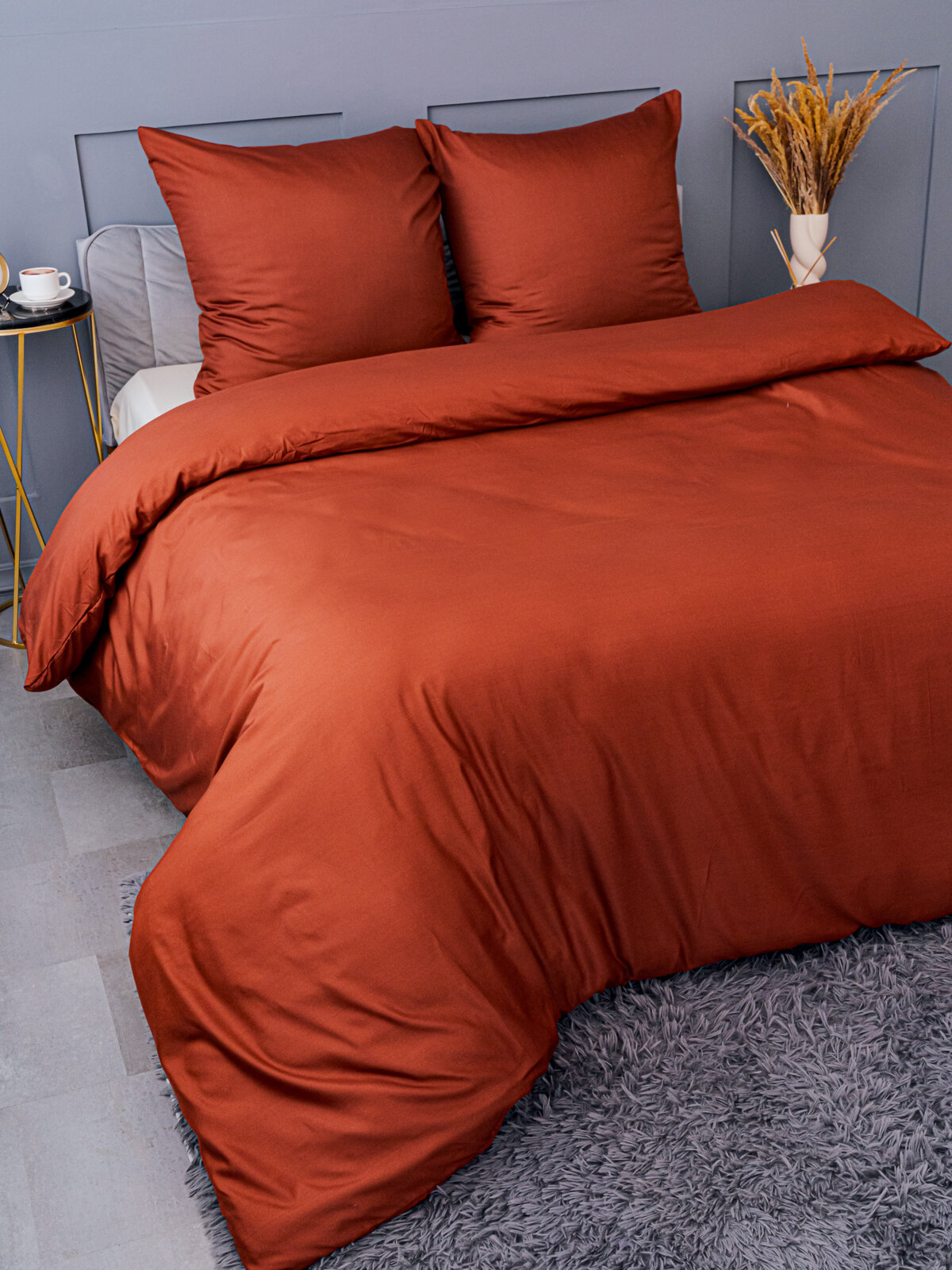 Постельное белье евро Павлина Манетти полисатин однотонный, (оранжевый/серый) S19