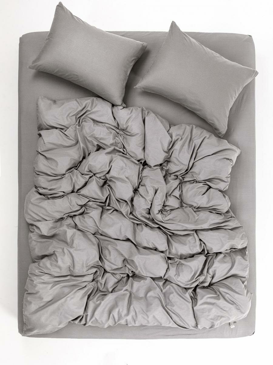Постельное белье на молнии однотонное Urban Family (аналог икеа), Графит, евро, наволочки 50х70, 100% хлопок, перкаль
