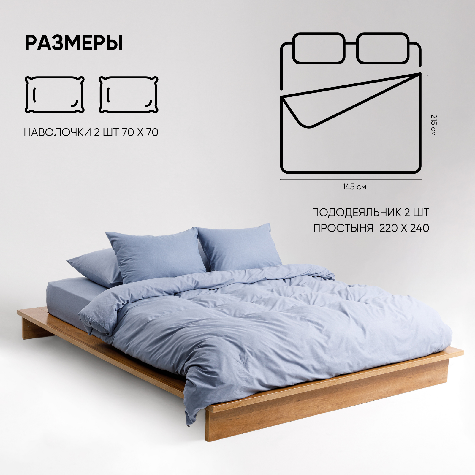 Постельное белье однотонное Urban Family (аналог икеа), Деним, 2 спальное с европростыней, наволочки на молнии 70х70, 100% хлопок, перкаль