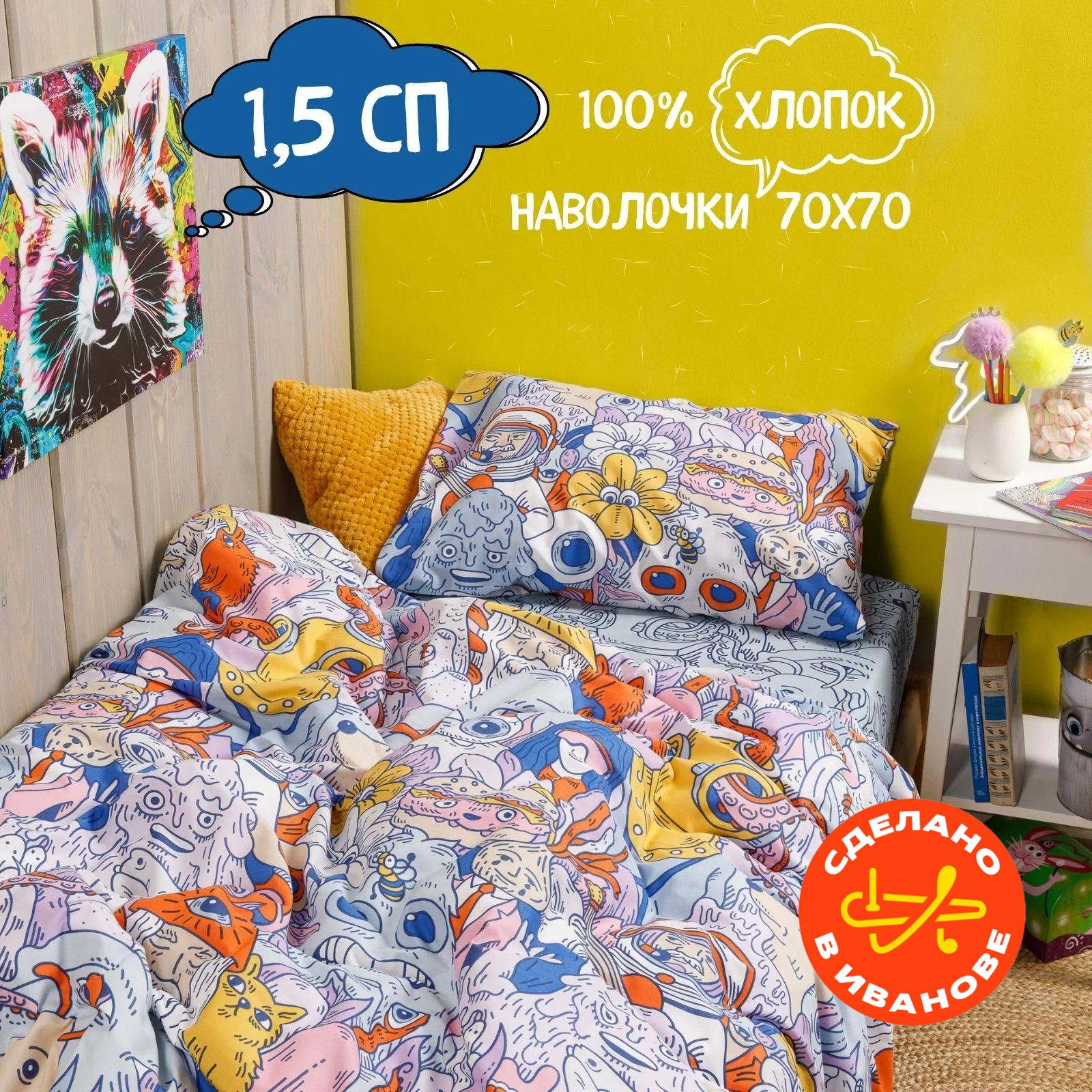 СохранитьДетское постельное белье 1 5 спальное наволочка 70х70 см, WAKE me WAKE Дудлики, перкаль, 100% хлопок интересное: