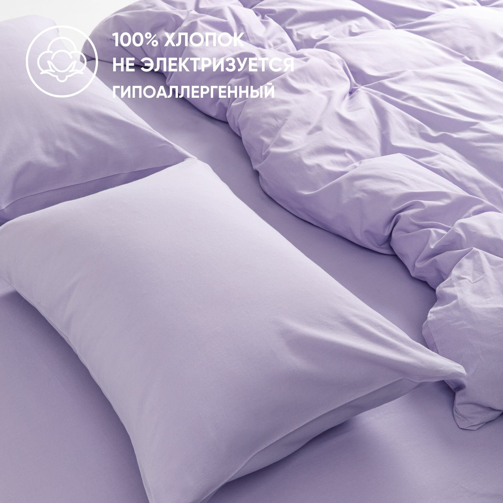 Постельное белье однотонное Urban Family (аналог икеа), Лавандовый, евро, наволочки на молнии 50х70, 100% хлопок, перкаль