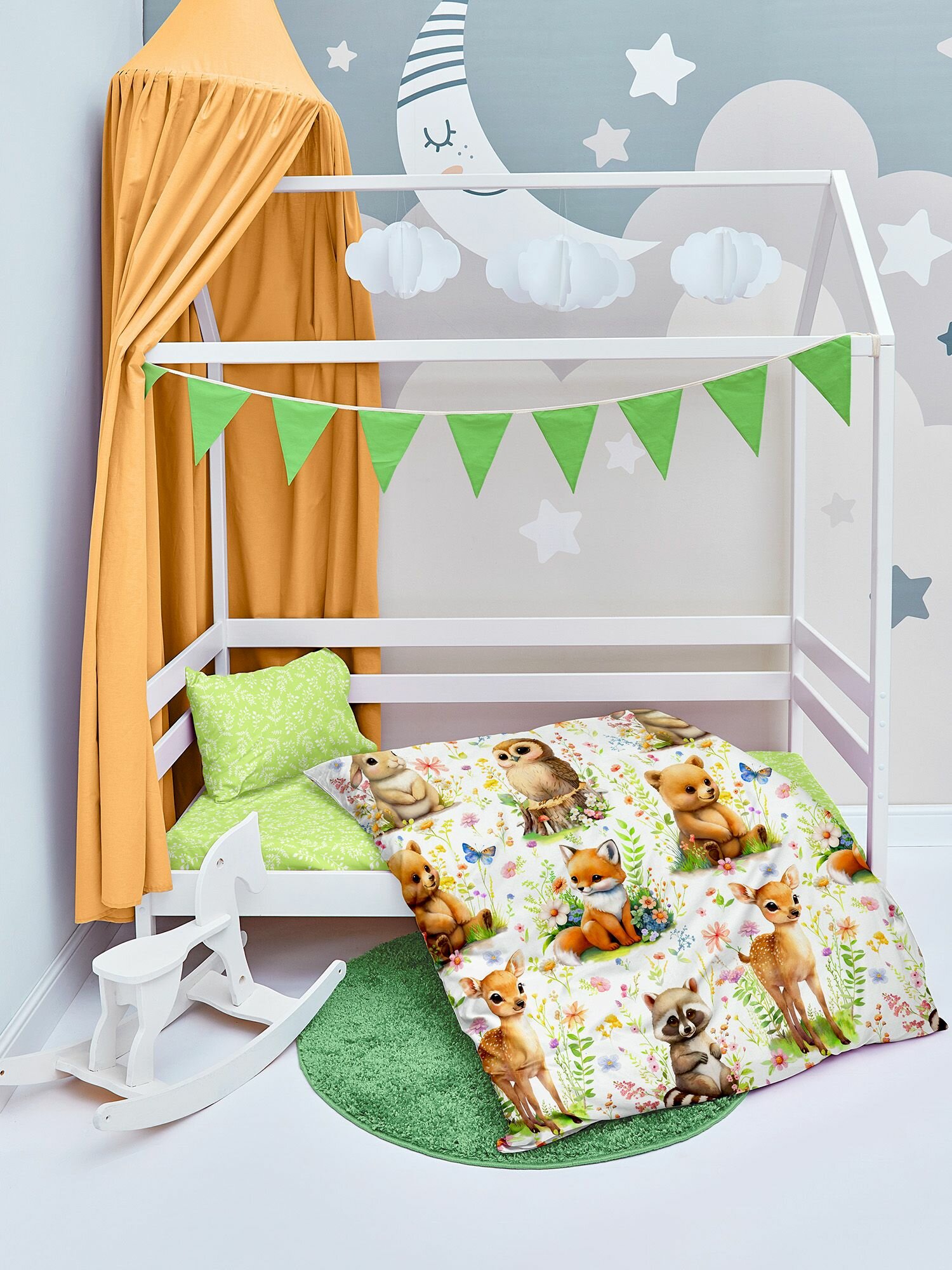 Купить Постельное белье 1,5 спальное детское 160х80 в кроватку для мальчика и девочки, комплект Лесные зверята