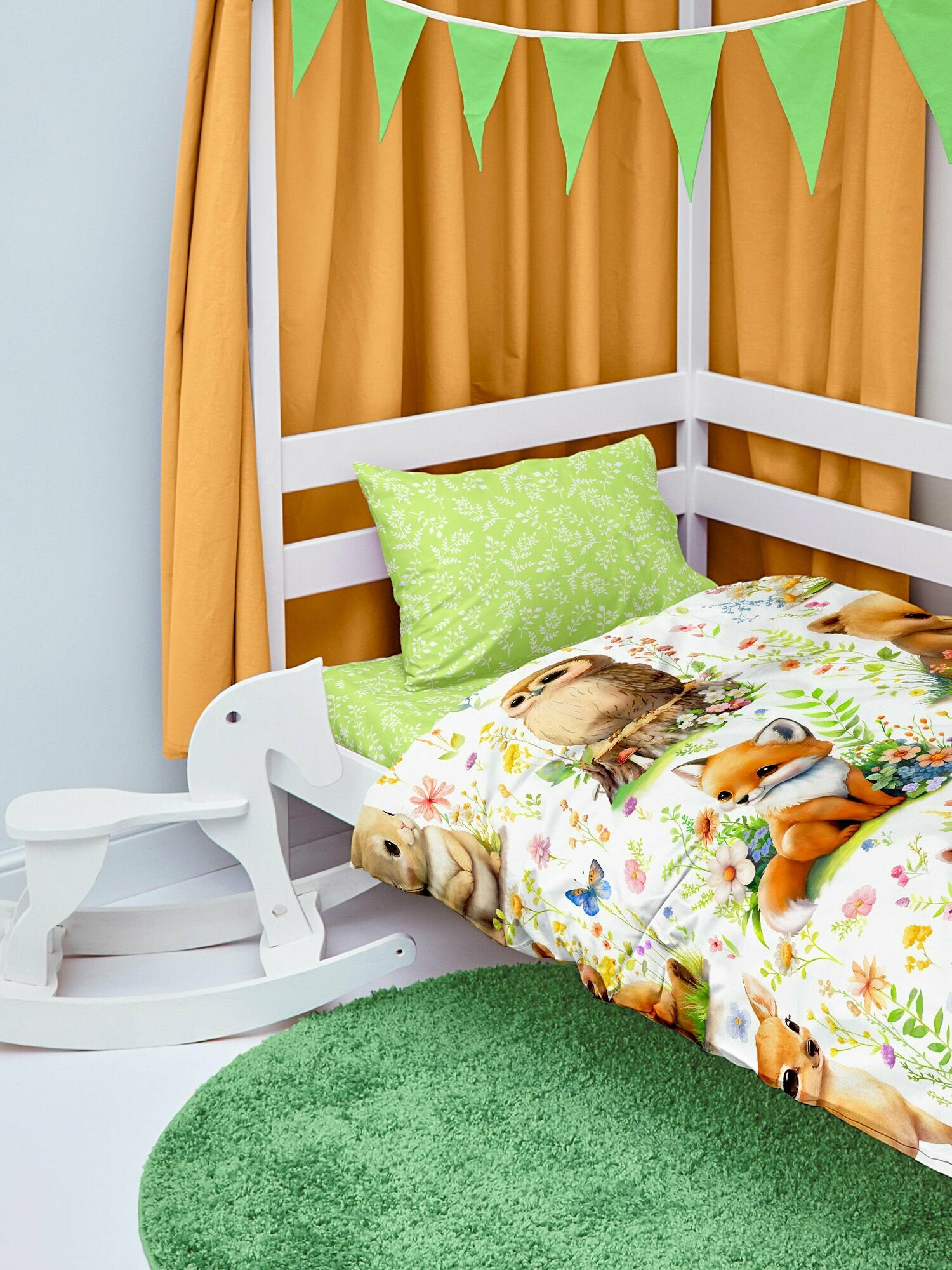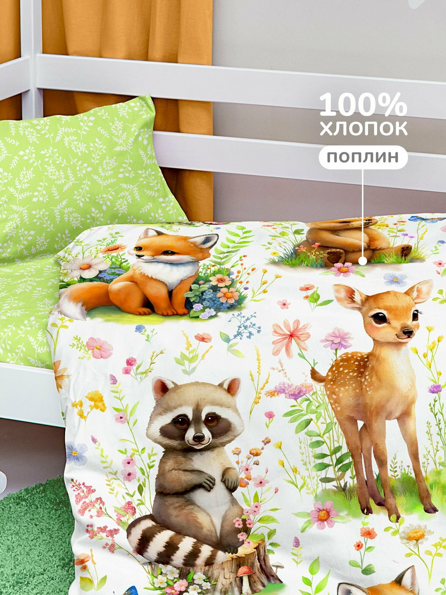 СохранитьПостельное белье 1,5 спальное детское 160х80 в кроватку для мальчика и девочки, комплект Лесные зверята интересное: