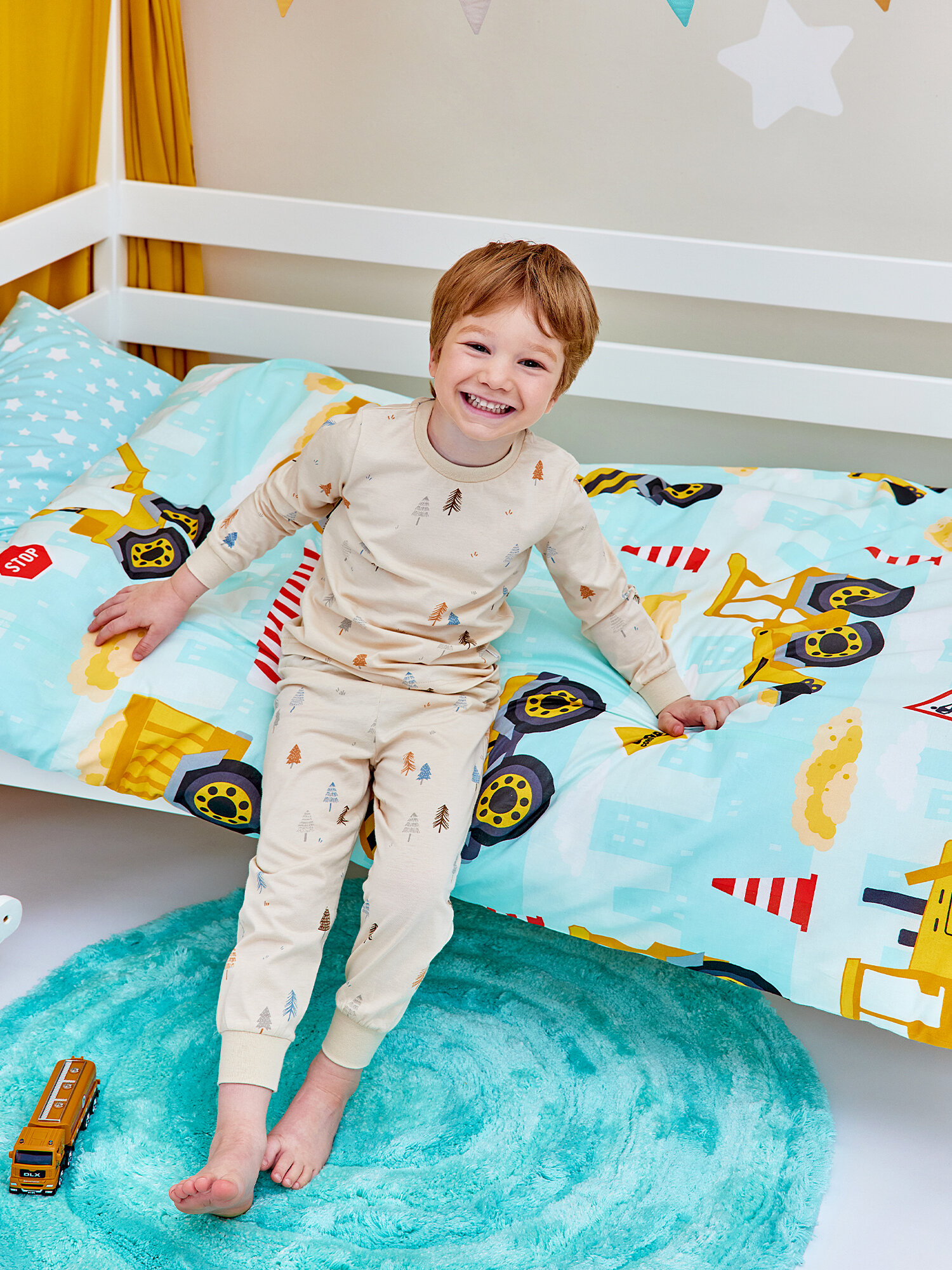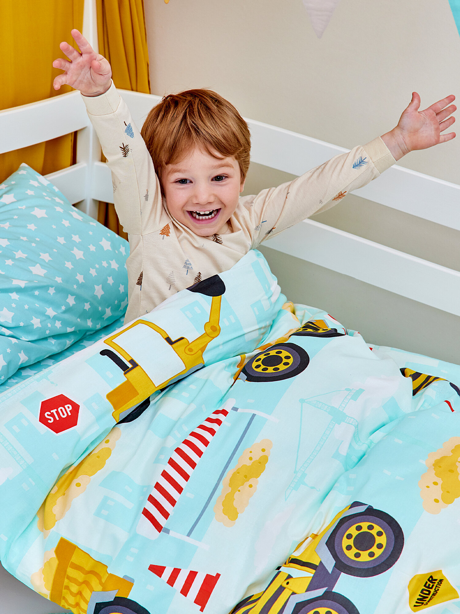 СохранитьПостельное белье детское 160х80 юниор Juno, поплин хлопок, 1 наволочка 40х60, детское постельное белье в кроватку Машинки Строительный транспорт, комплект для мальчика интересное: