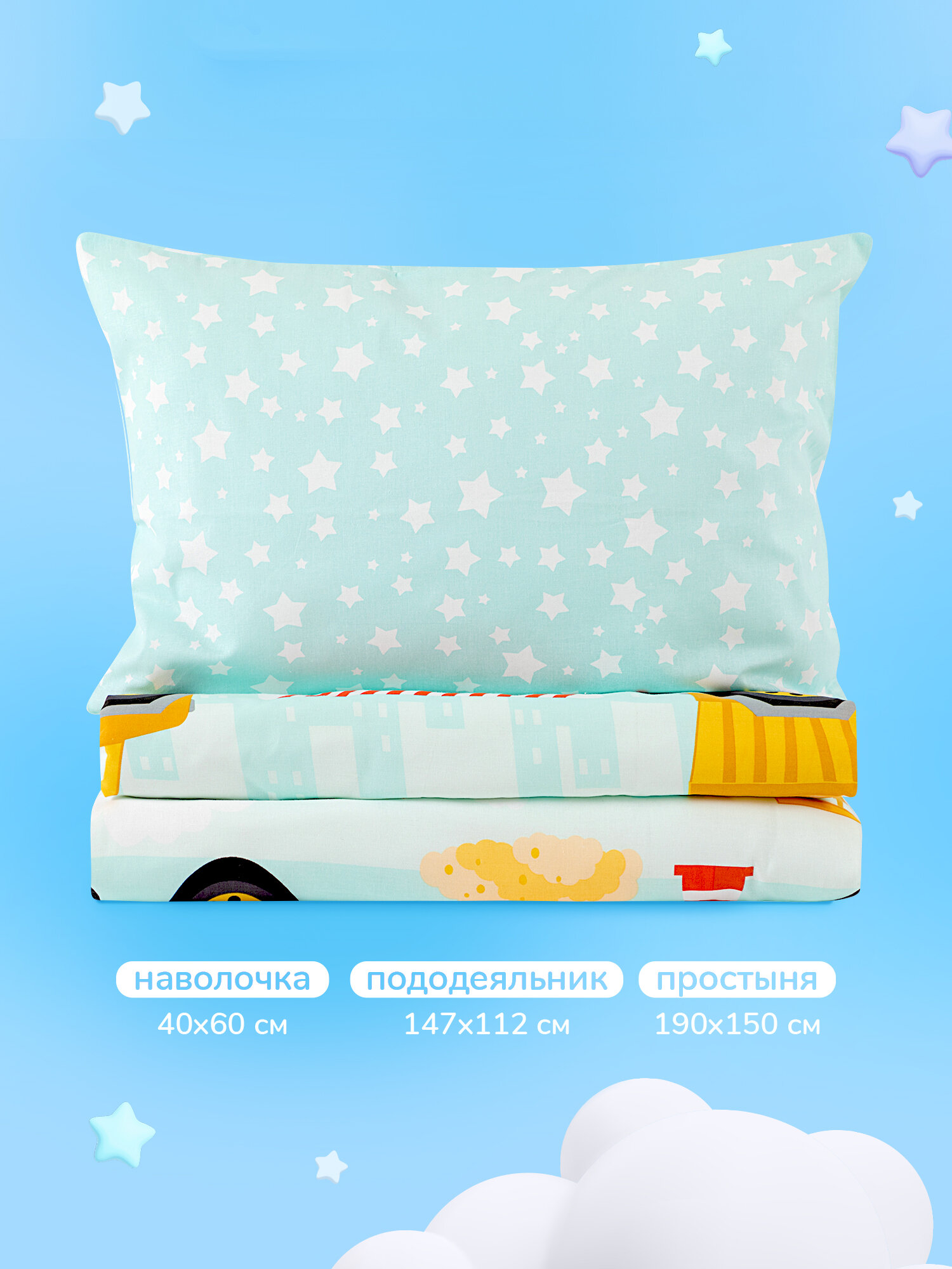 Постельное белье детское 160х80 юниор Juno, поплин хлопок, 1 наволочка 40х60, детское постельное белье в кроватку Road transport / Строительный транспорт, комплект для малыша, для мальчика