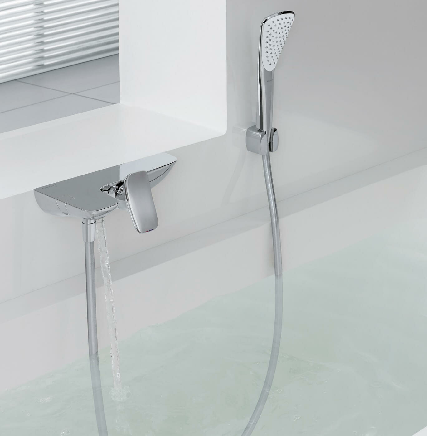 Смеситель KLUDI AMBIENTA для ванны/душа, настенный, однозахватный, короткий излив, хром 534450575
