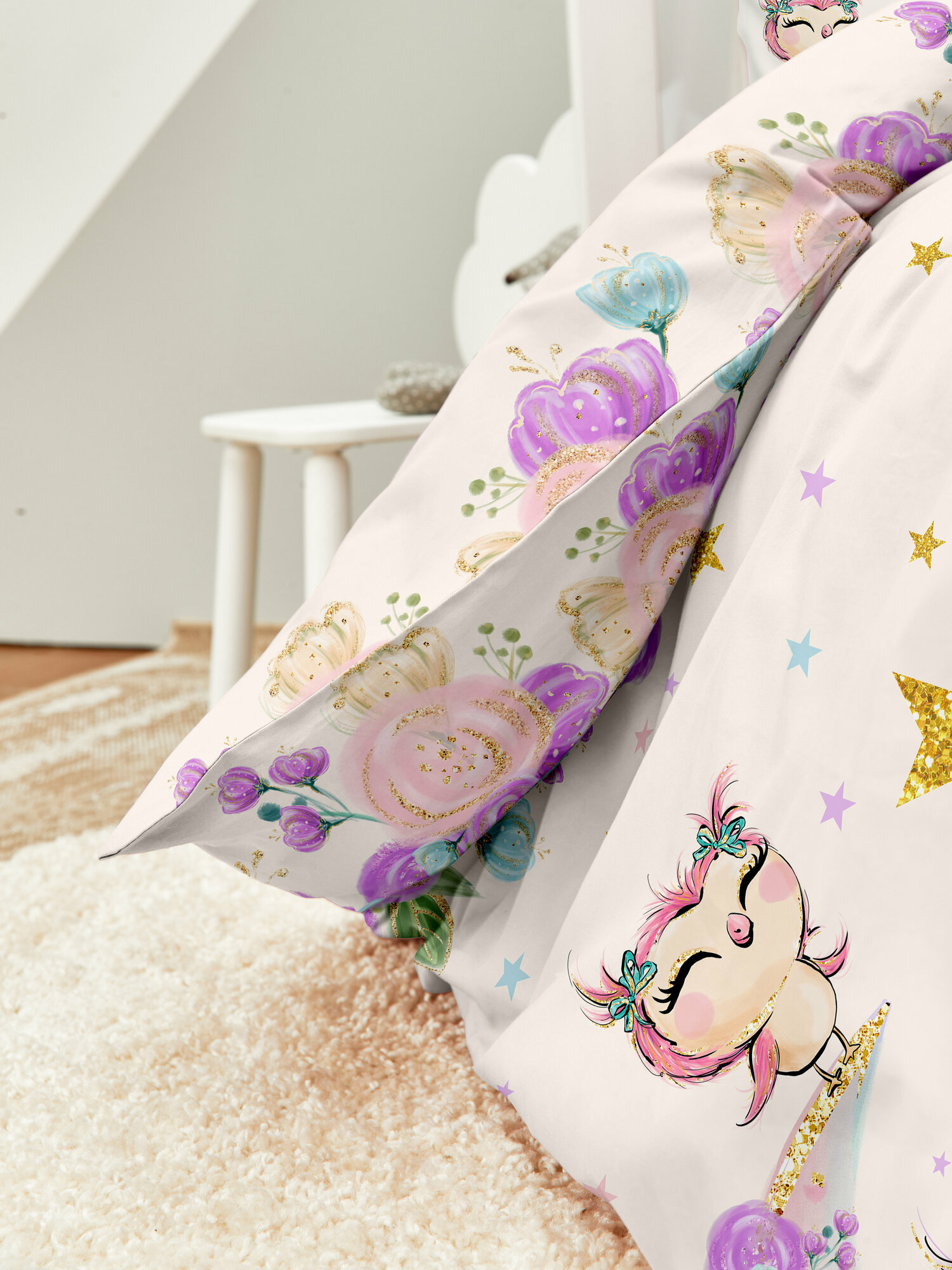 Детское постельное белье 1,5 спальное поплин "Juno" (70х70) рис. 16738-1/16739-1 Sweet unicorn , Единороги