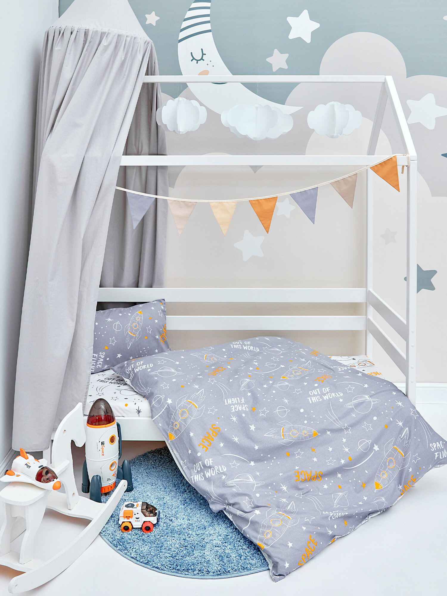 Комплект постельного белья детский поплин "Juno" (40х60) рис. 16726-1/16726-2 Space white