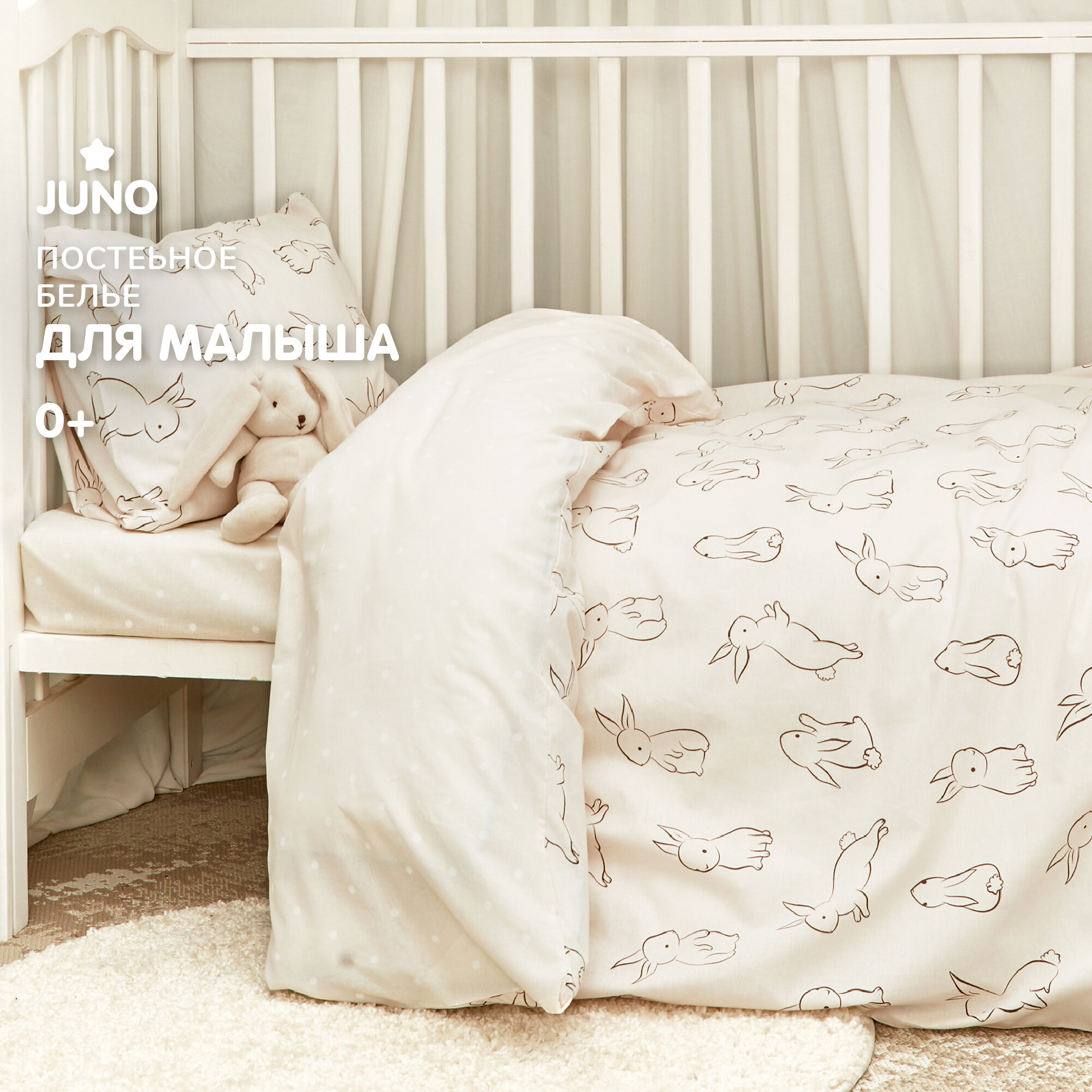 СохранитьДетское постельное белье в кроватку для новорожденного Juno, поплин хлопок, 1 наволочка 40х60, Зайчата / Зайчики, комплект для малышей девочки, мальчика интересное: