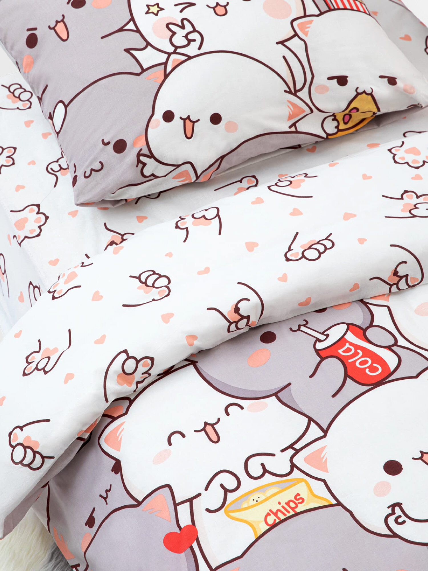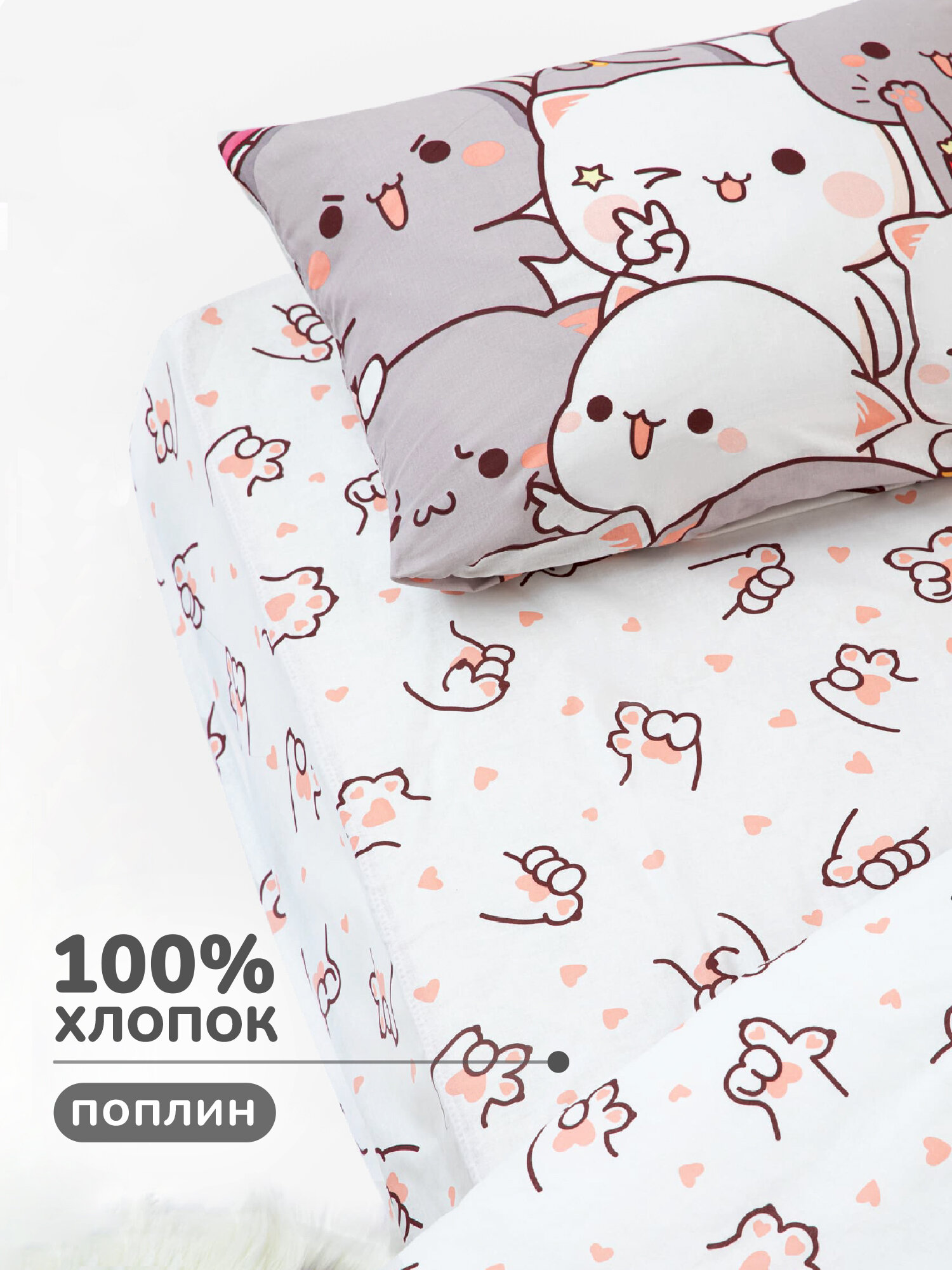Купить Детское постельное белье 1,5 спальное Juno, поплин хлопок, 1 наволочка 70х70, Kawaii cats