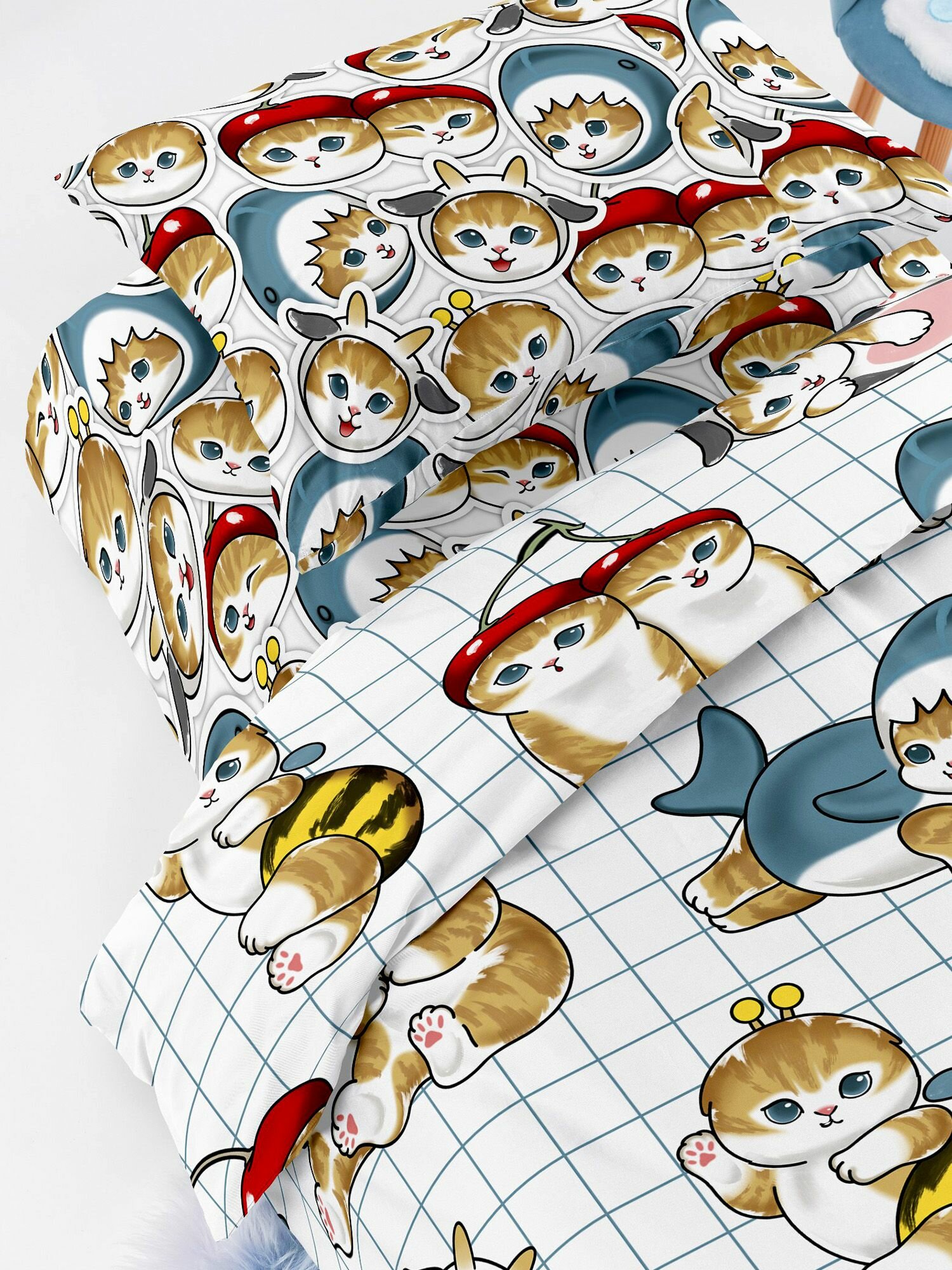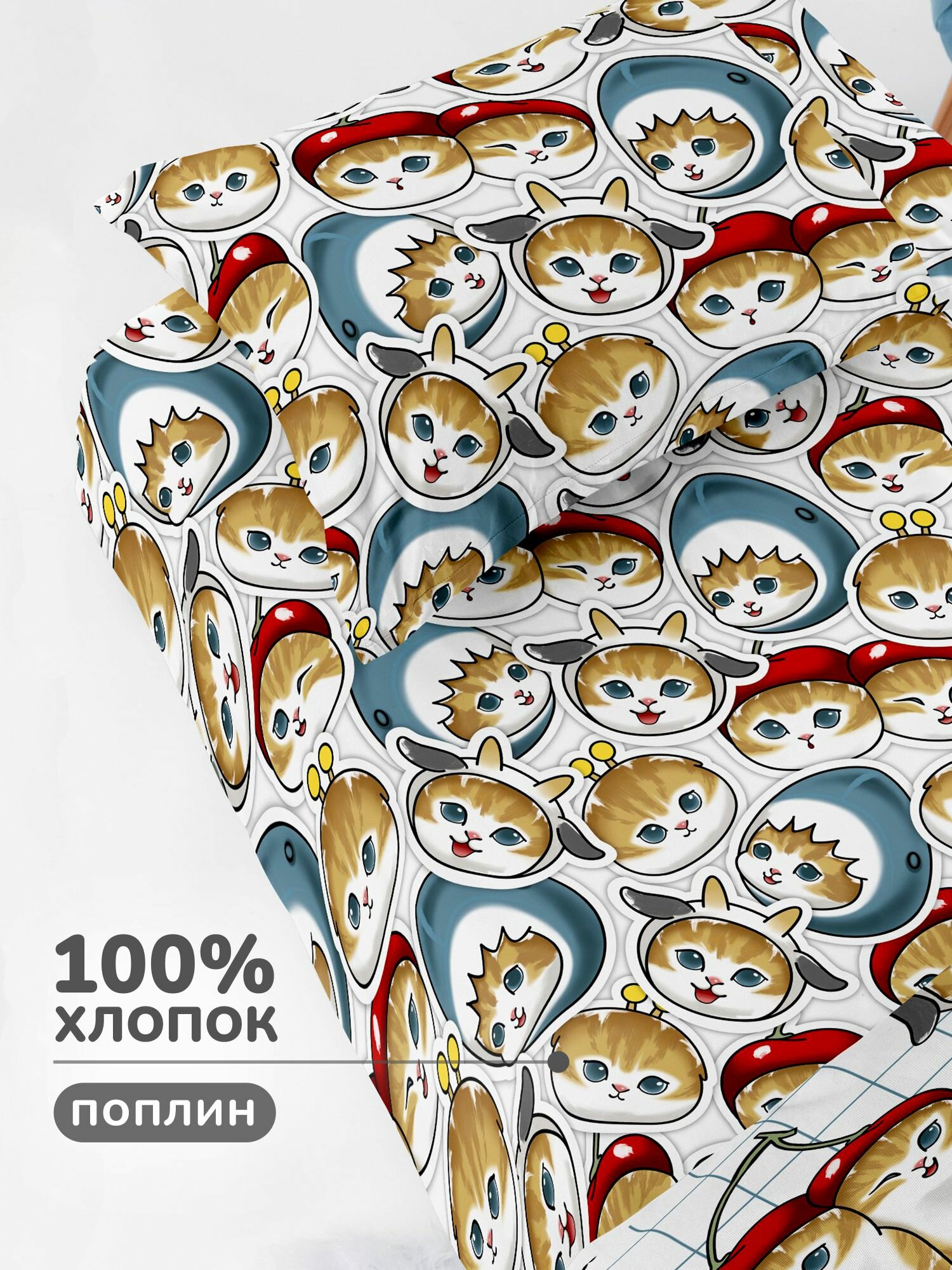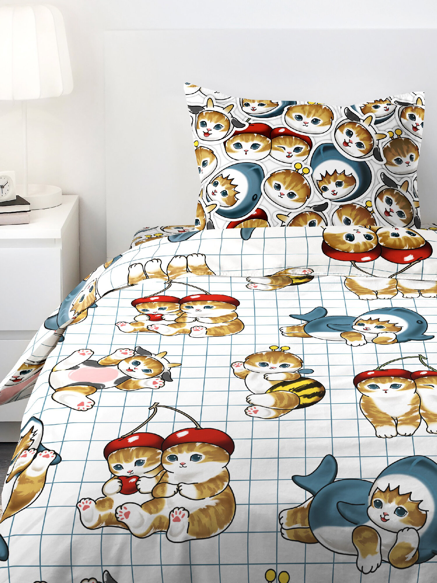 Детское постельное белье 1,5 спальное Juno, поплин хлопок, 1 наволочка 70х70, Kawaii cats