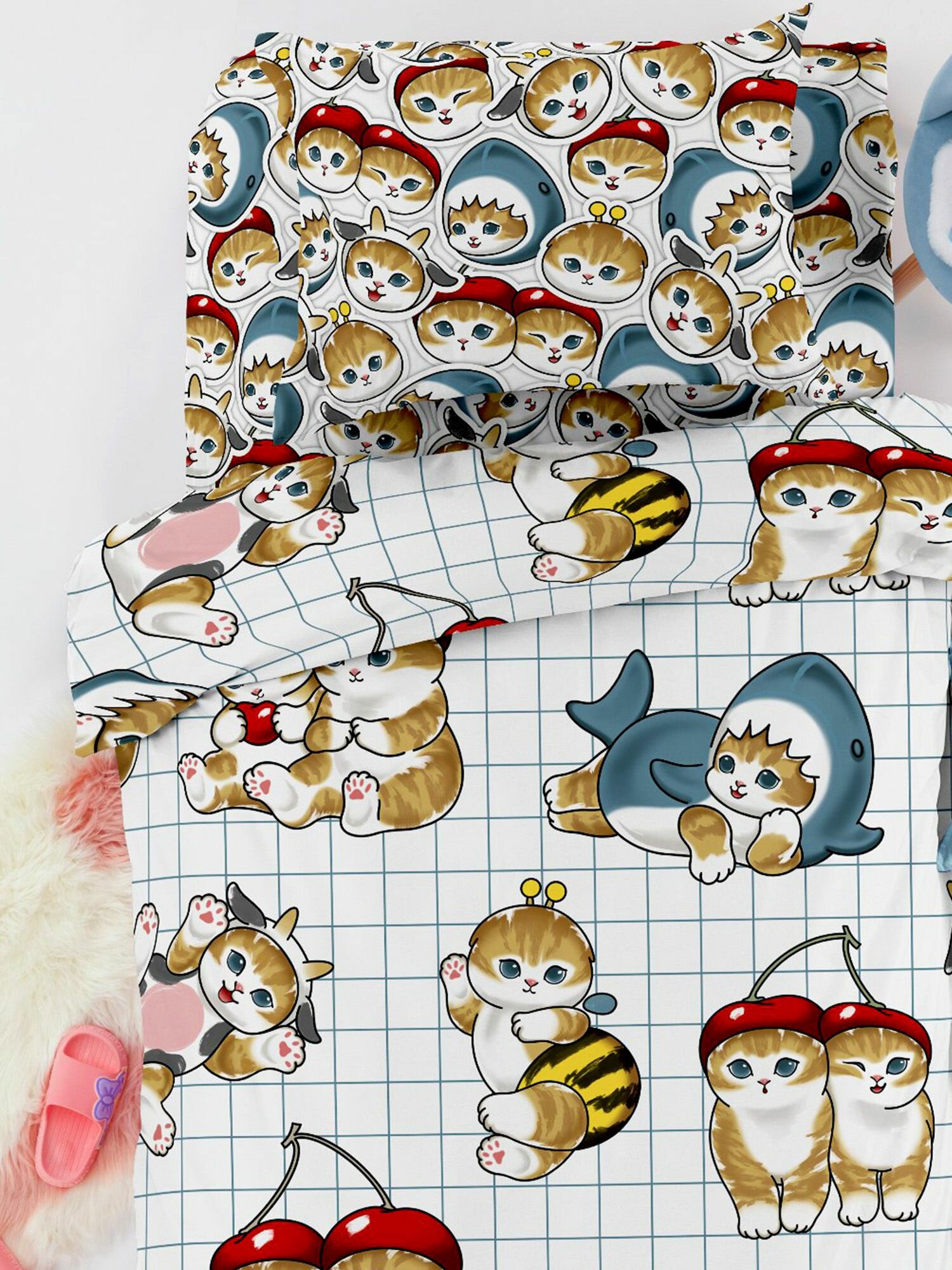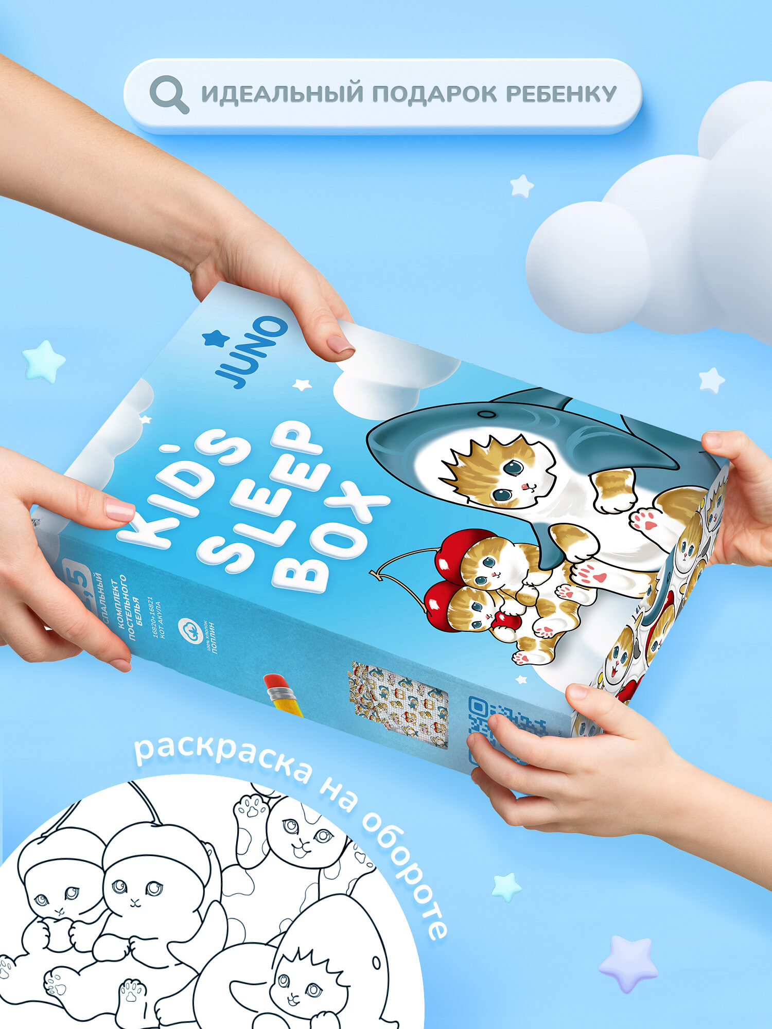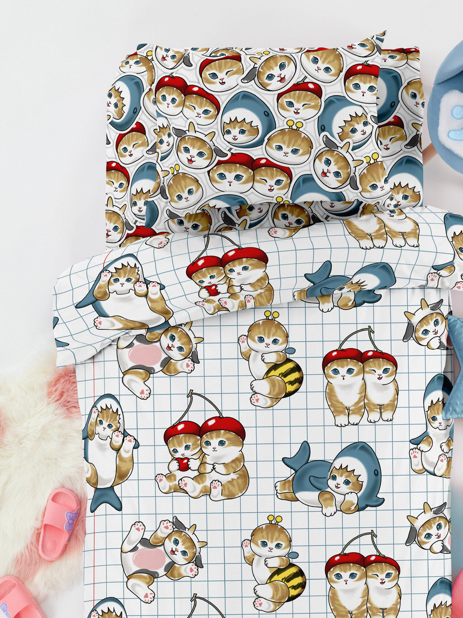 Детское постельное белье 1,5 спальное Juno, поплин хлопок, 1 наволочка 70х70, Kawaii cats