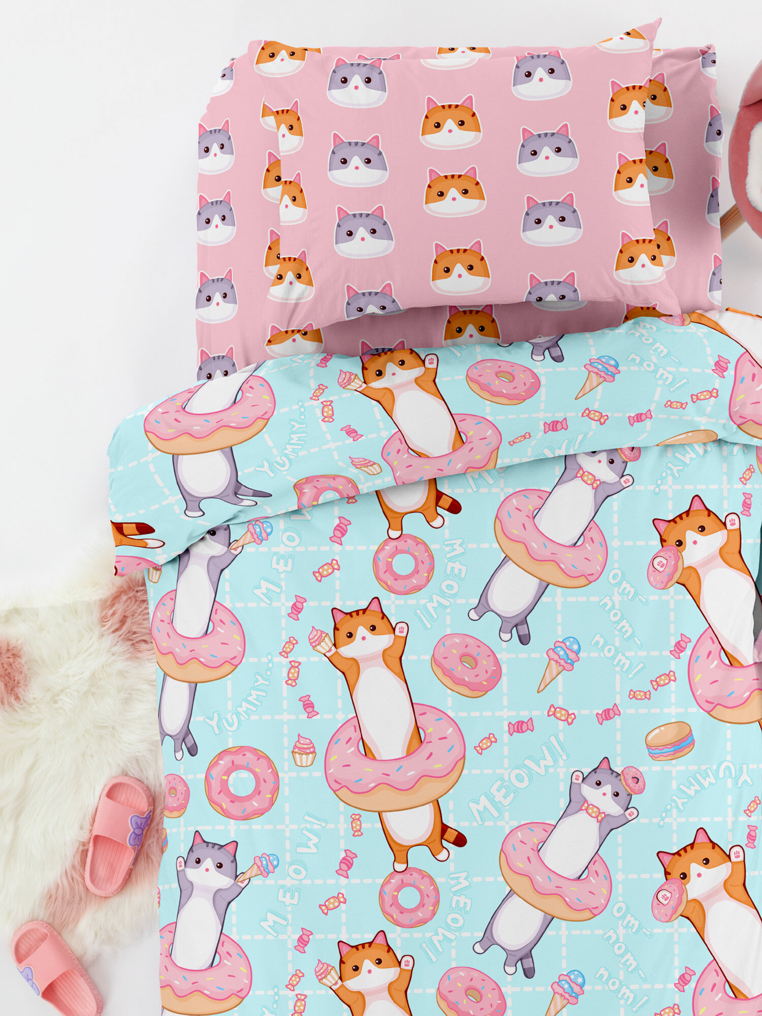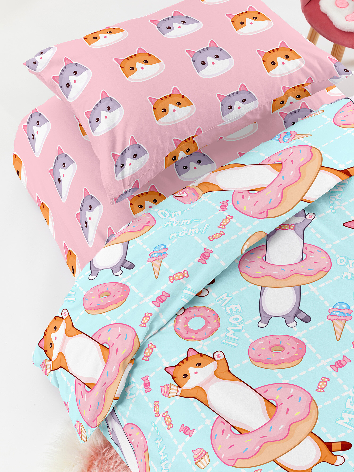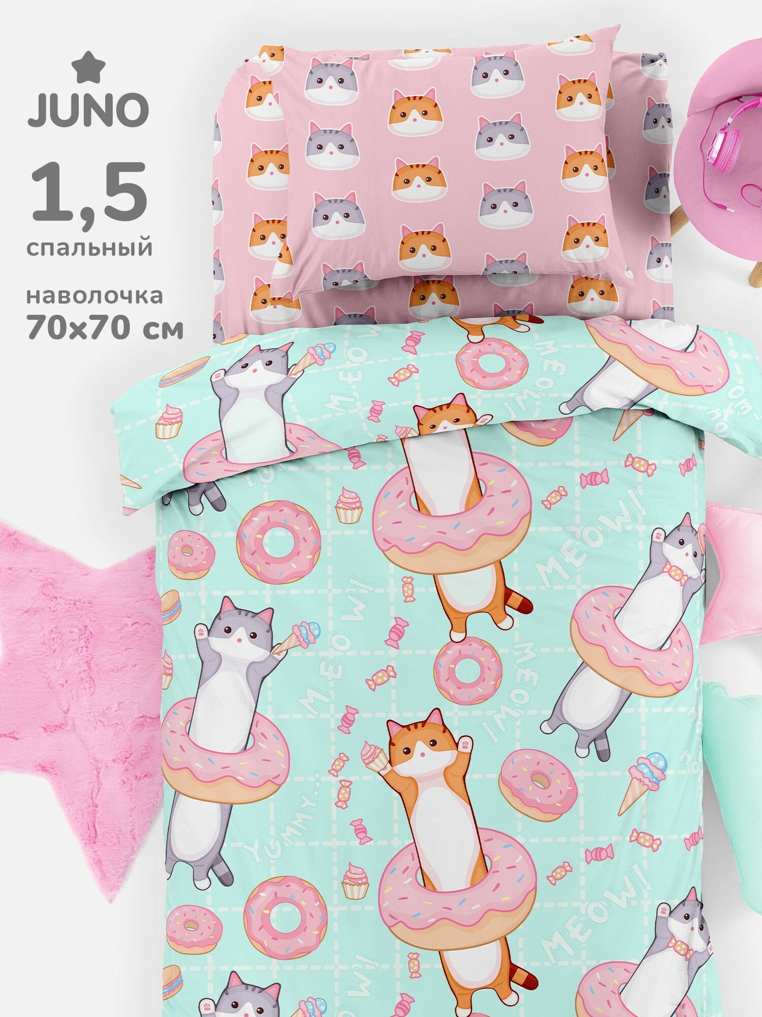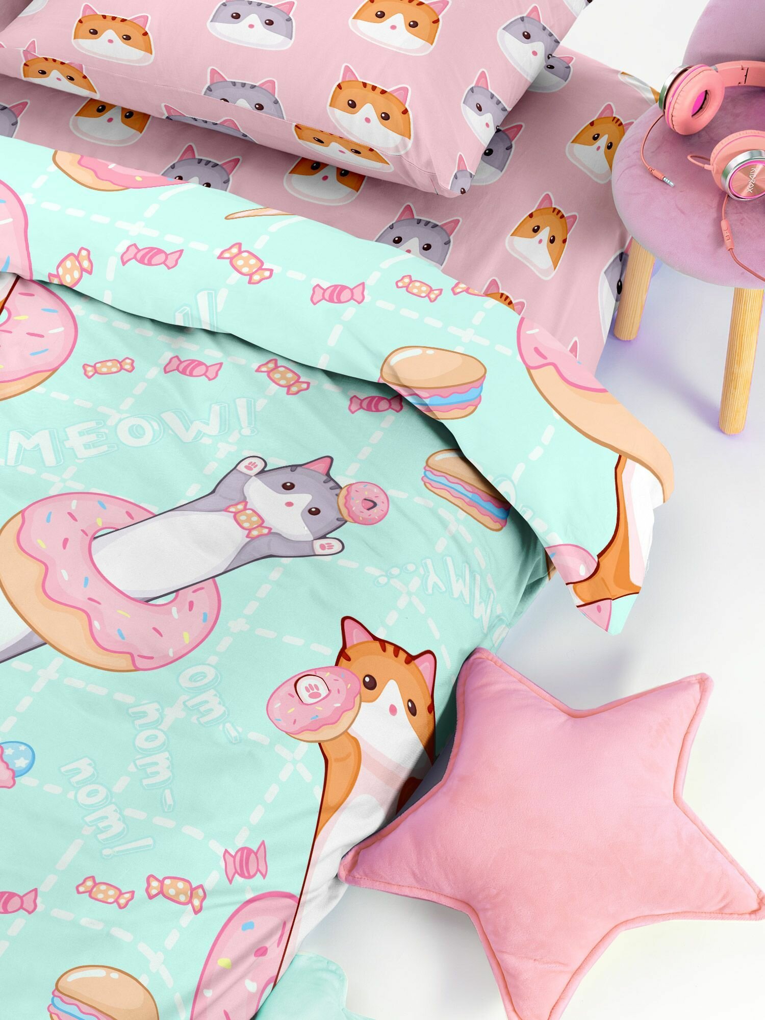 Детское постельное белье 1,5 спальное Juno, поплин хлопок, 1 наволочка 70х70, Kawaii cats