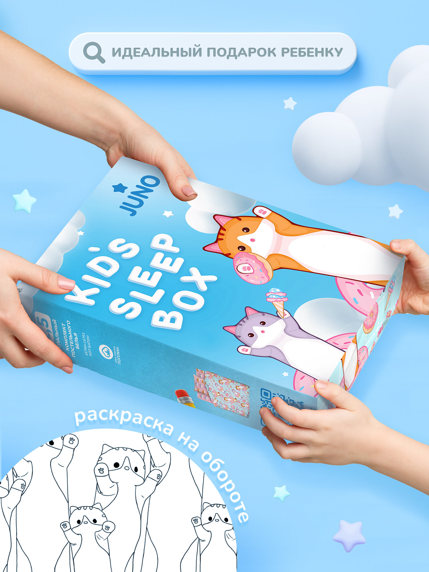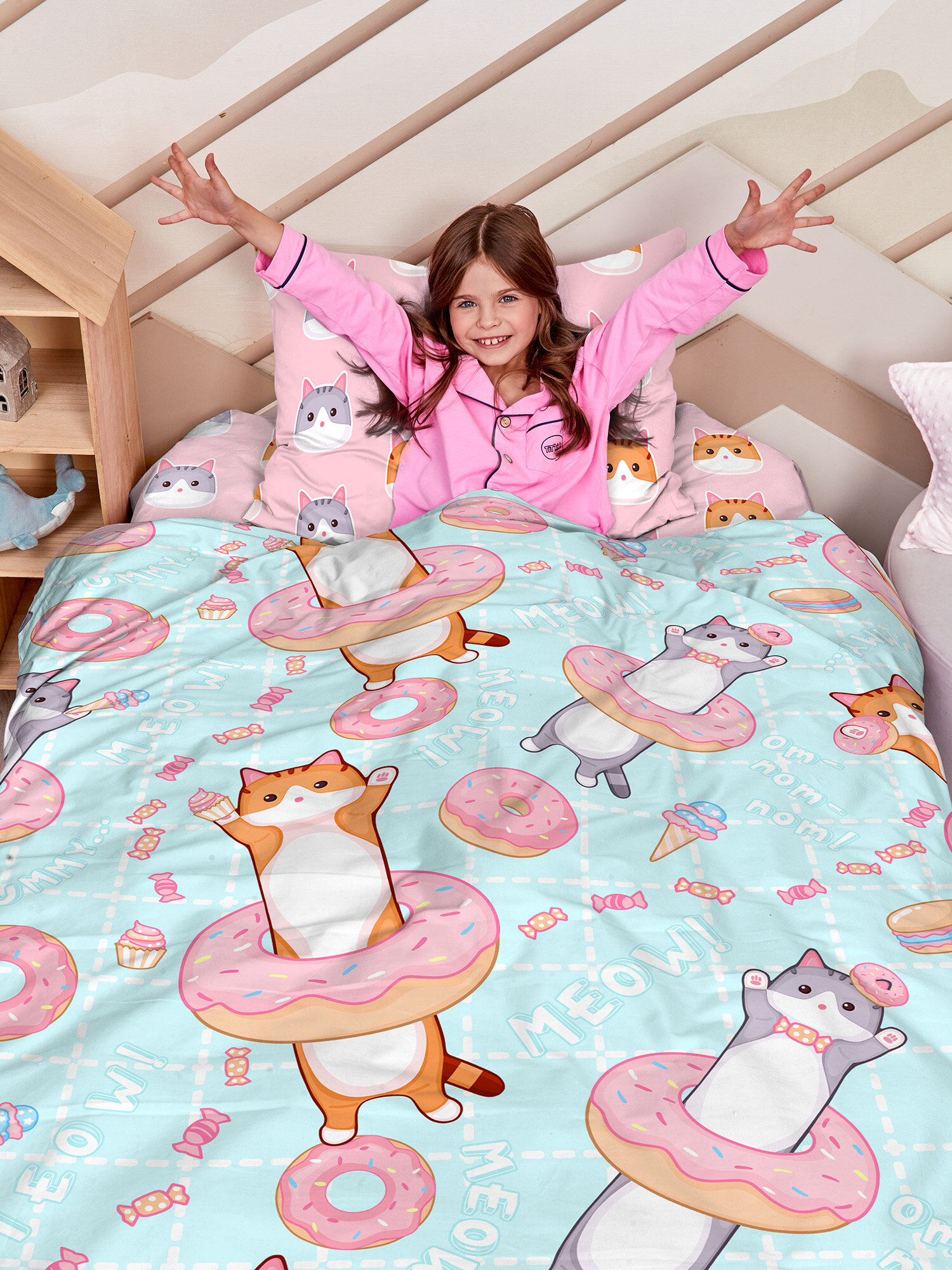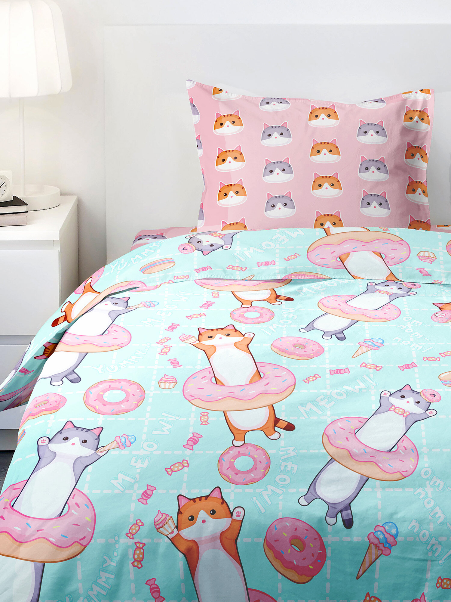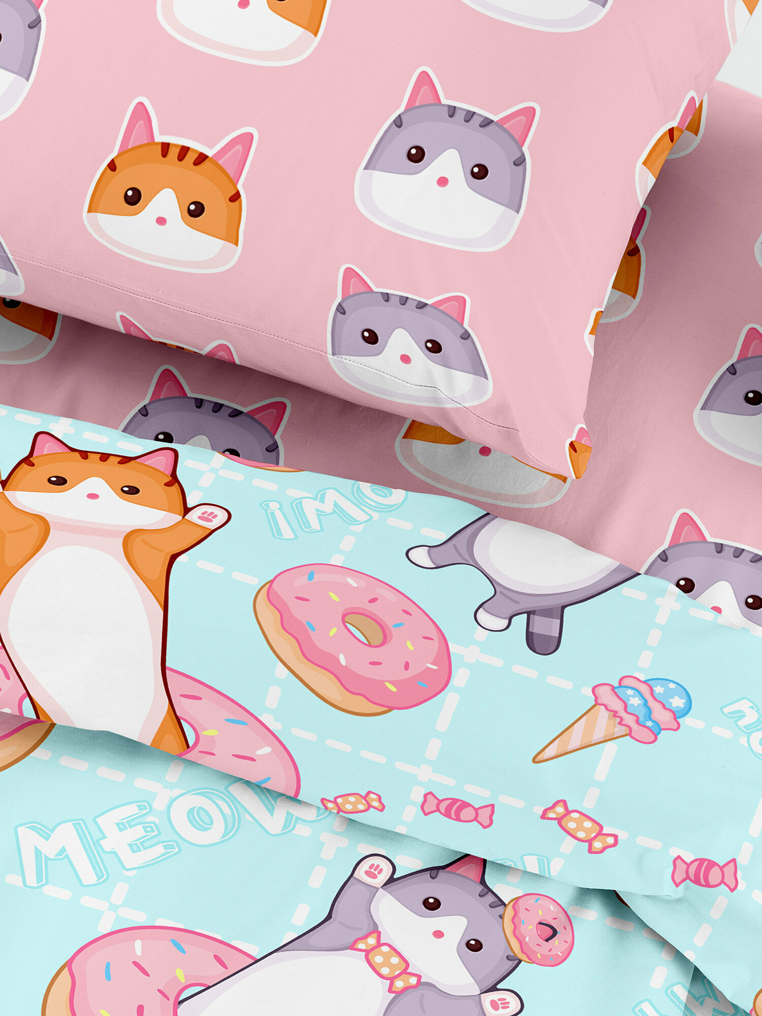 Детское постельное белье 1,5 спальное Juno, поплин хлопок, 1 наволочка 70х70, Kawaii cats