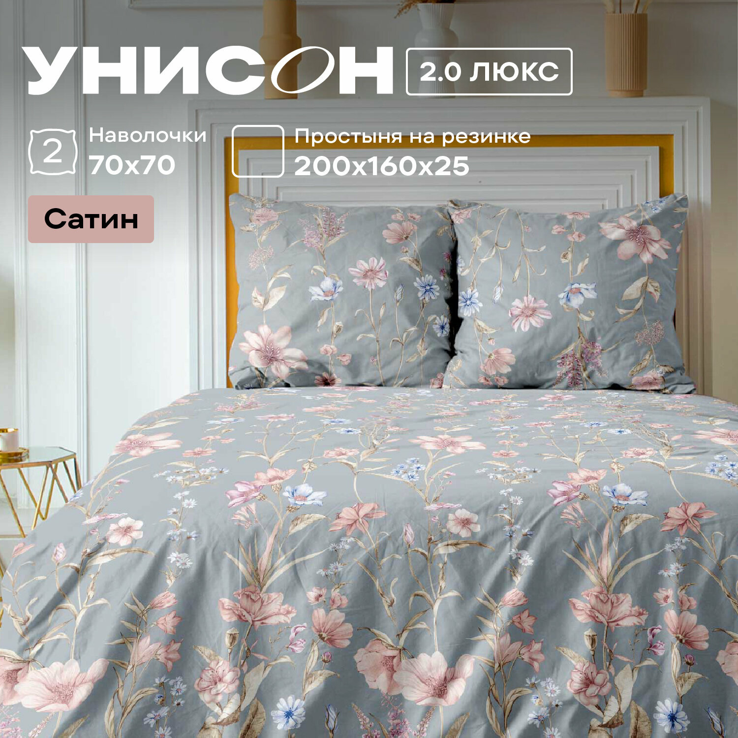 Постельное белье 2 спальное Унисон, Сатин, нав. 70х70, на резинке, Botanica