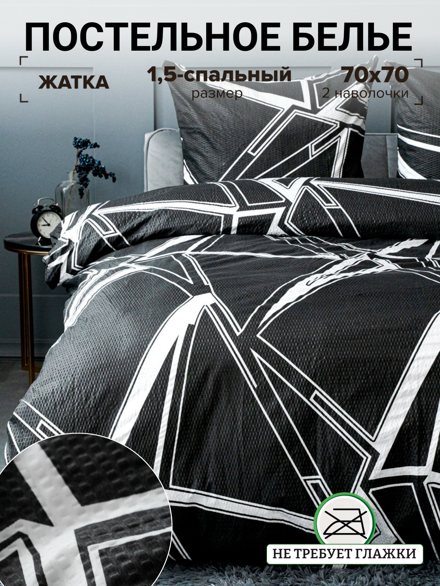 Постельное белье 1.5 спальное Павлина "Жанет" креп, Разлом черно-белый интересное: