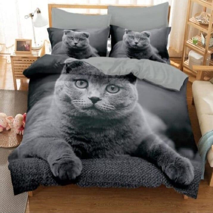 Комплект Постельного белья 2-х спальное Кошка с Зелеными Глазами / Двуспальное / простыня 180x220 / пододеяльник 180x220 / Наволочки 70x70-2