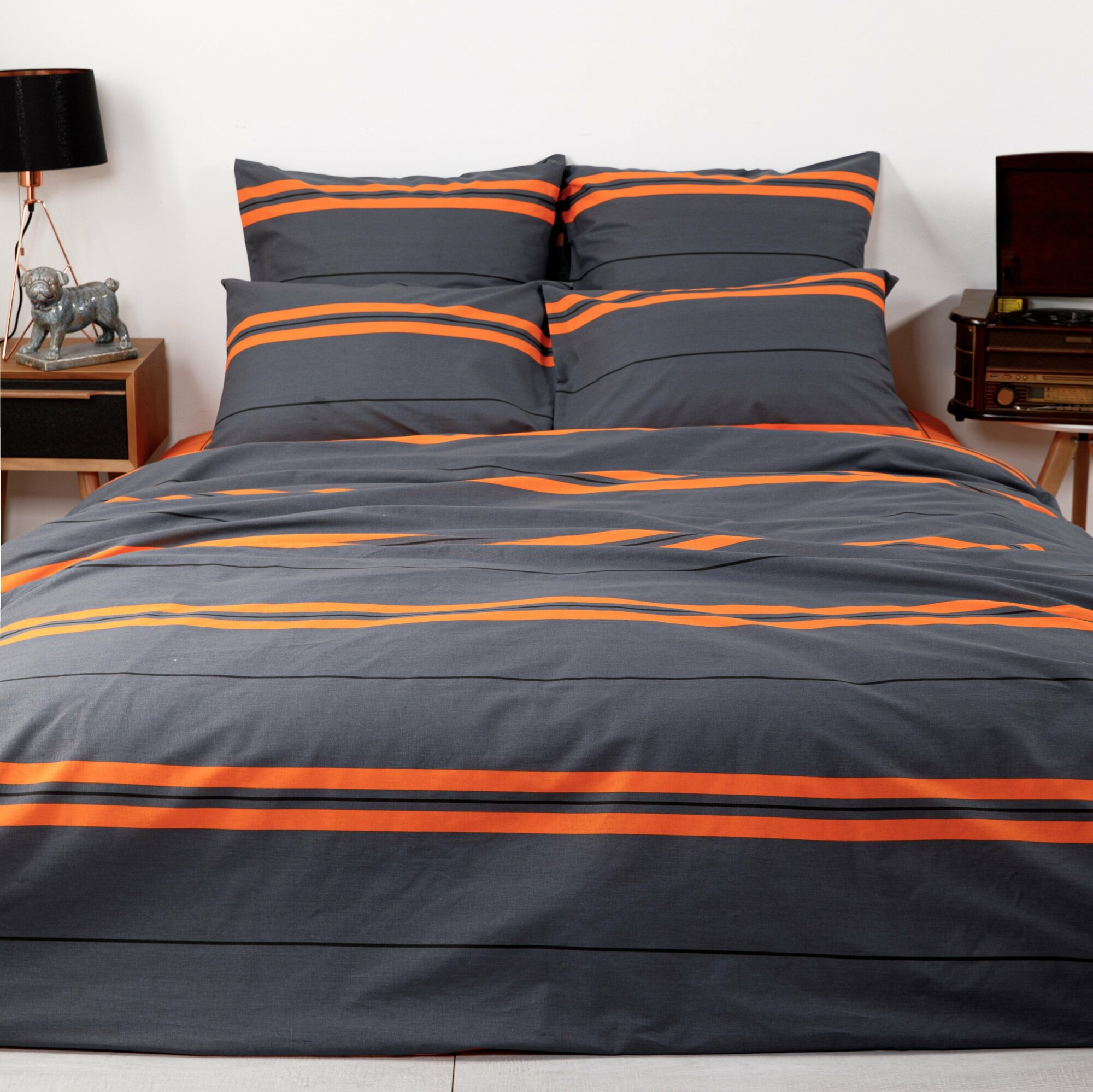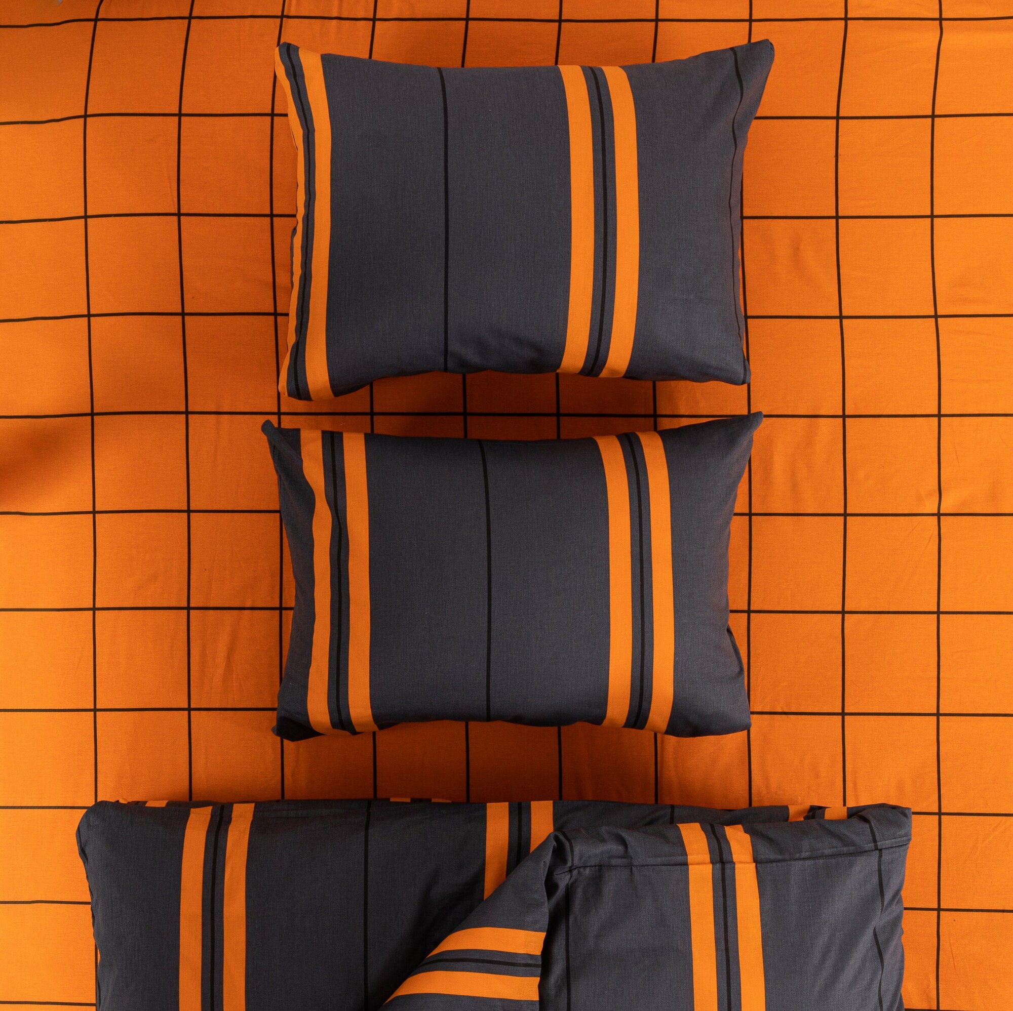 Постельное белье Ночь Нежна, Оранж, поплин, евро, простыня на резинке, наволочки 50х70, 100% хлопок