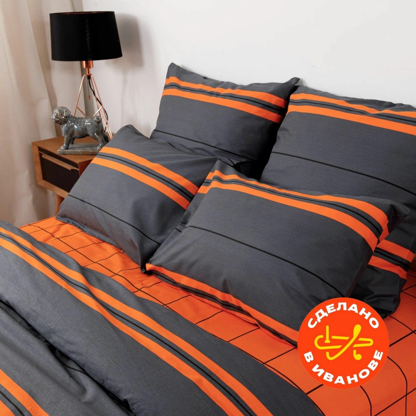 Постельное бельё/комплект/евро/простынь на резинке 180х200/пододеяльник 200х220/наволочки 50х70/поплин/хлопок/ROYAL Оранж/Ночь Нежна