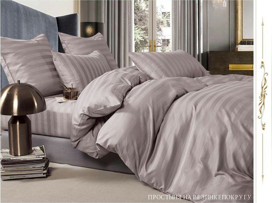 Постельное белье евростандарт 2 спальное/ евро CandiesMency Страйп сатин, простыня на резинке 180x200+25 светло-серый