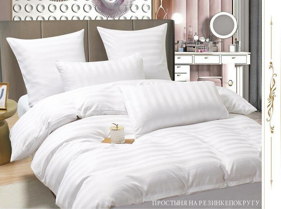 Постельное белье евростандарт 2 спальное/ евро/ CandiesMency cтрайп сатин простынь на резинке 180x200+25 белый