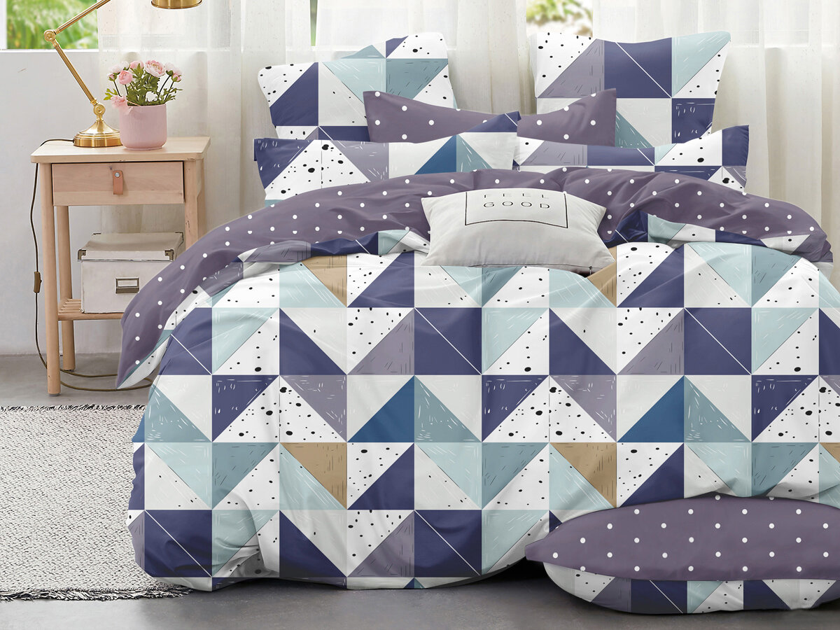 Постельное белье из мако-поплина 007-PP Cleo (серо-синий), 1,5 спальный (наволочки 70x70)