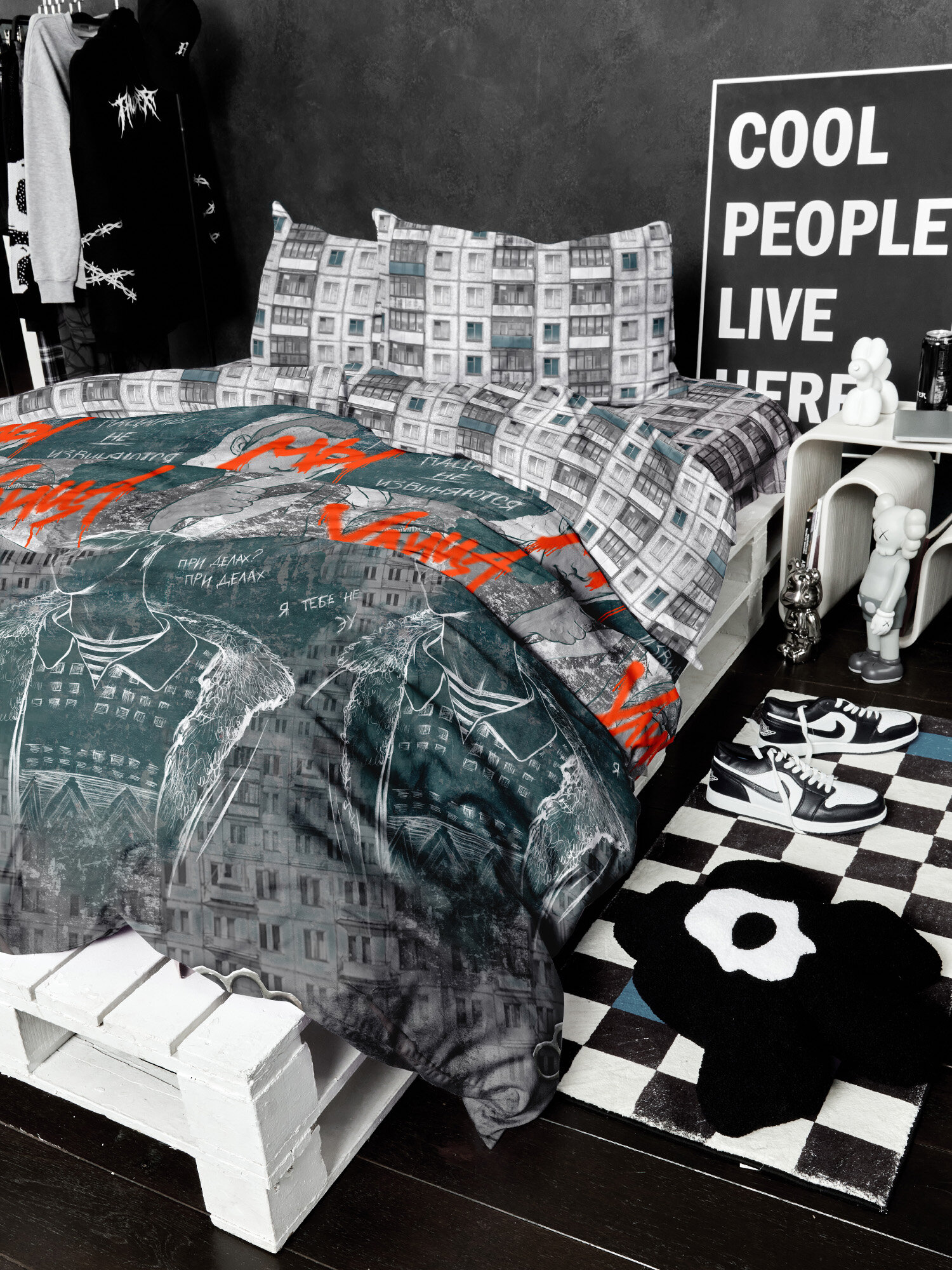 СохранитьКомплект постельного белья 1,5 спальный Crazy Getup, перкаль хлопок, 1 наволочка 70х70, рис. 16870-1/16871-1 Слово пацана интересное: