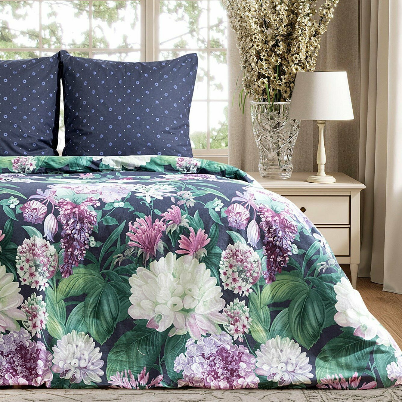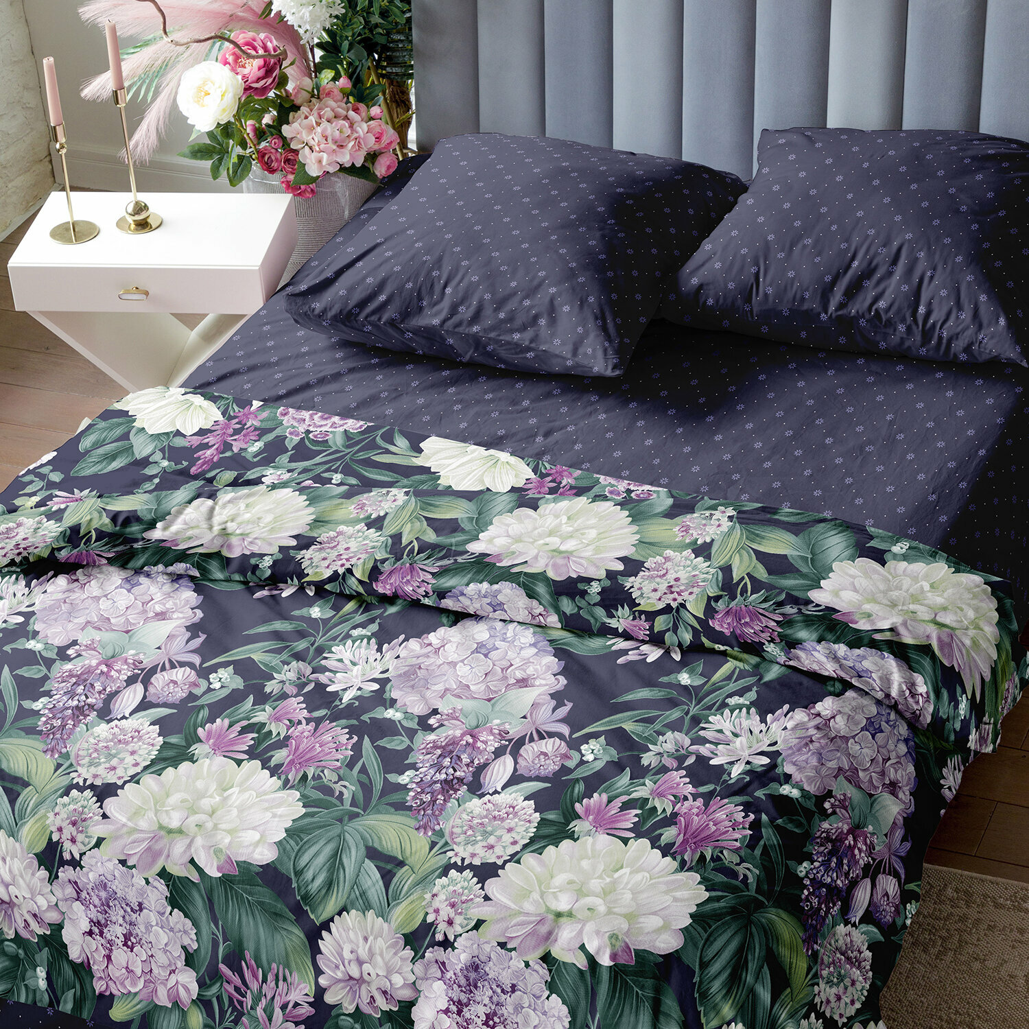 Постельное белье Евро Mia Cara, Перкаль, нав. 70х70, Таинственный сад, темно-фиолетовый