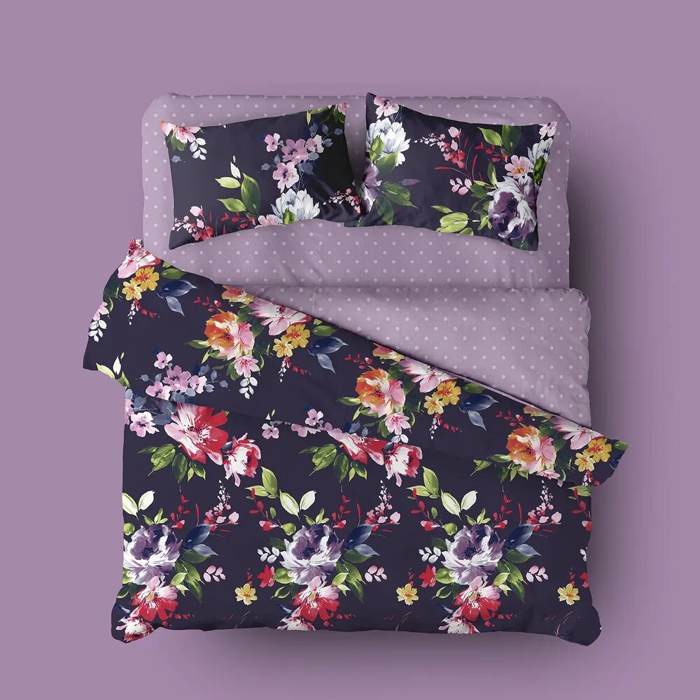 Постельное белье Евро Mia Cara, Перкаль, 4 нав. (50х70-2шт; 70х70-2шт), на резинке, Таинственный сад ,фиолетовый
