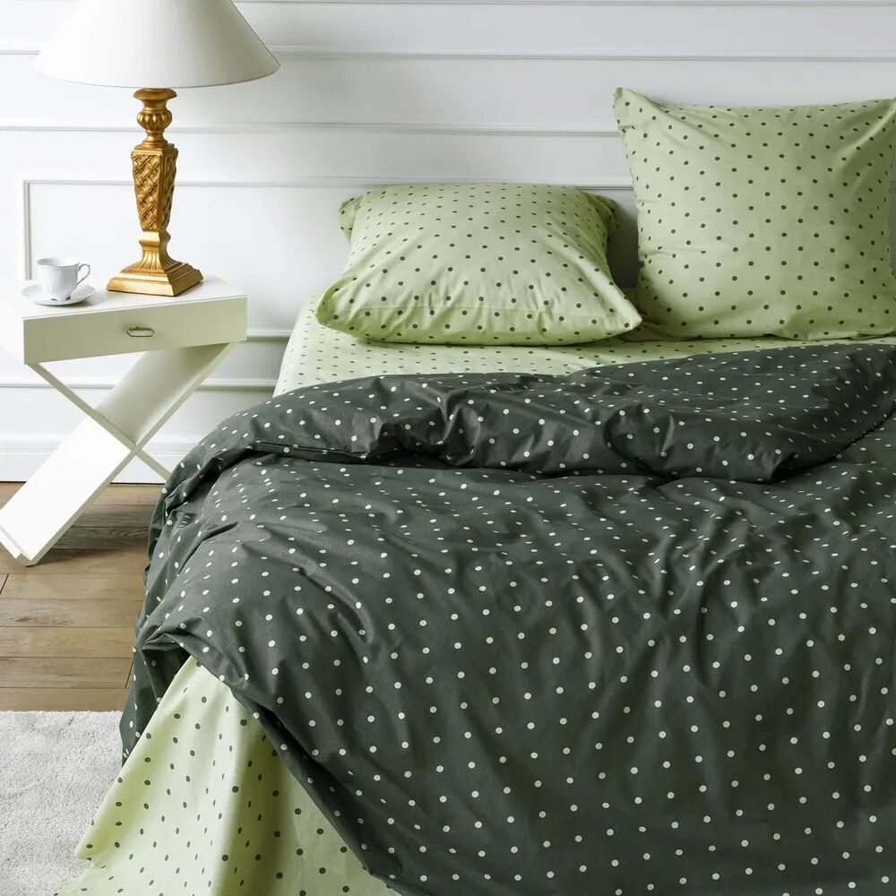 Постельное белье Евро Mia Cara, Перкаль, 4 нав. (50х70-2шт; 70х70-2шт), на резинке, Таинственный сад, зеленый