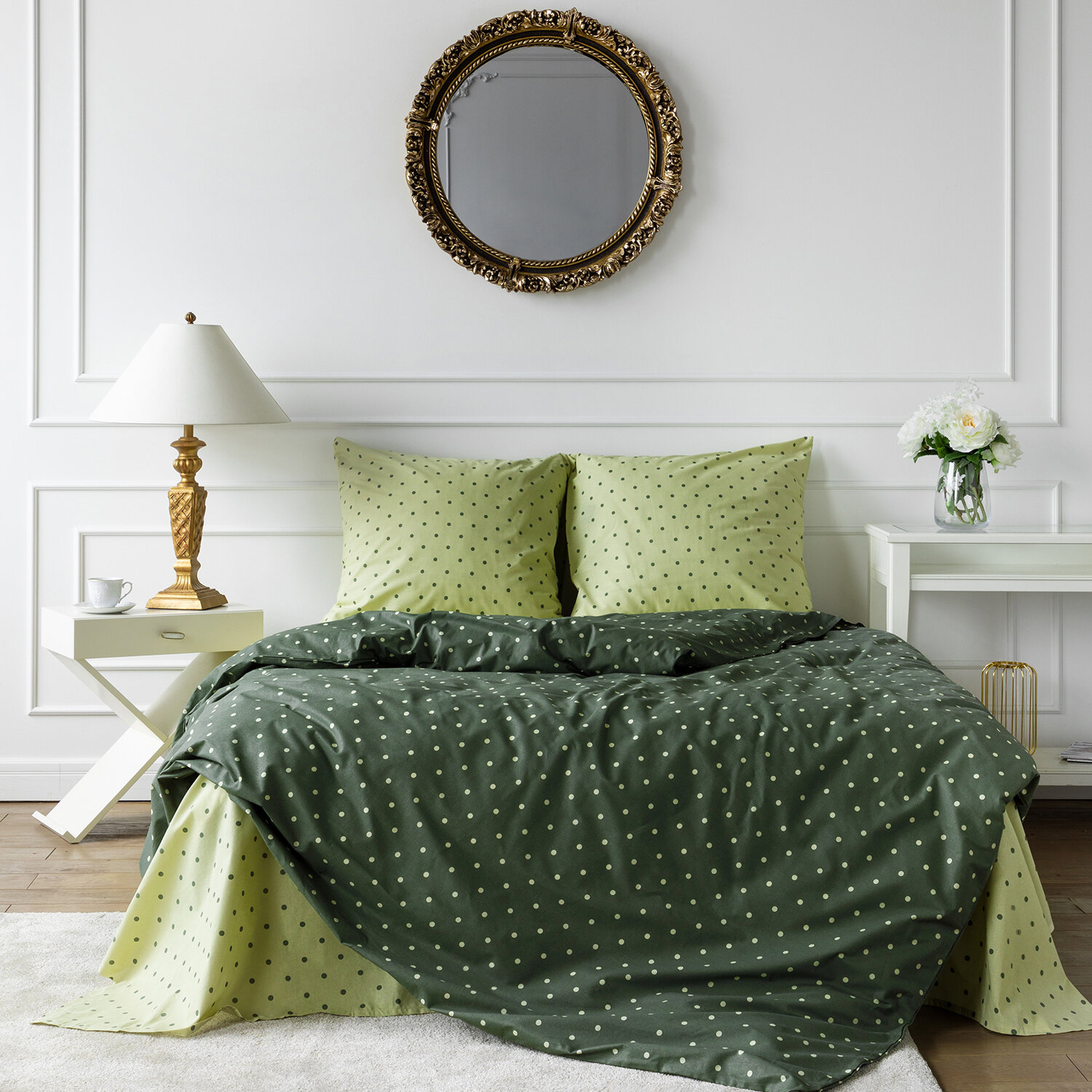 Постельное белье Евро Mia Cara, Перкаль, 4 нав. (50х70-2шт; 70х70-2шт), на резинке, Таинственный сад, зеленый