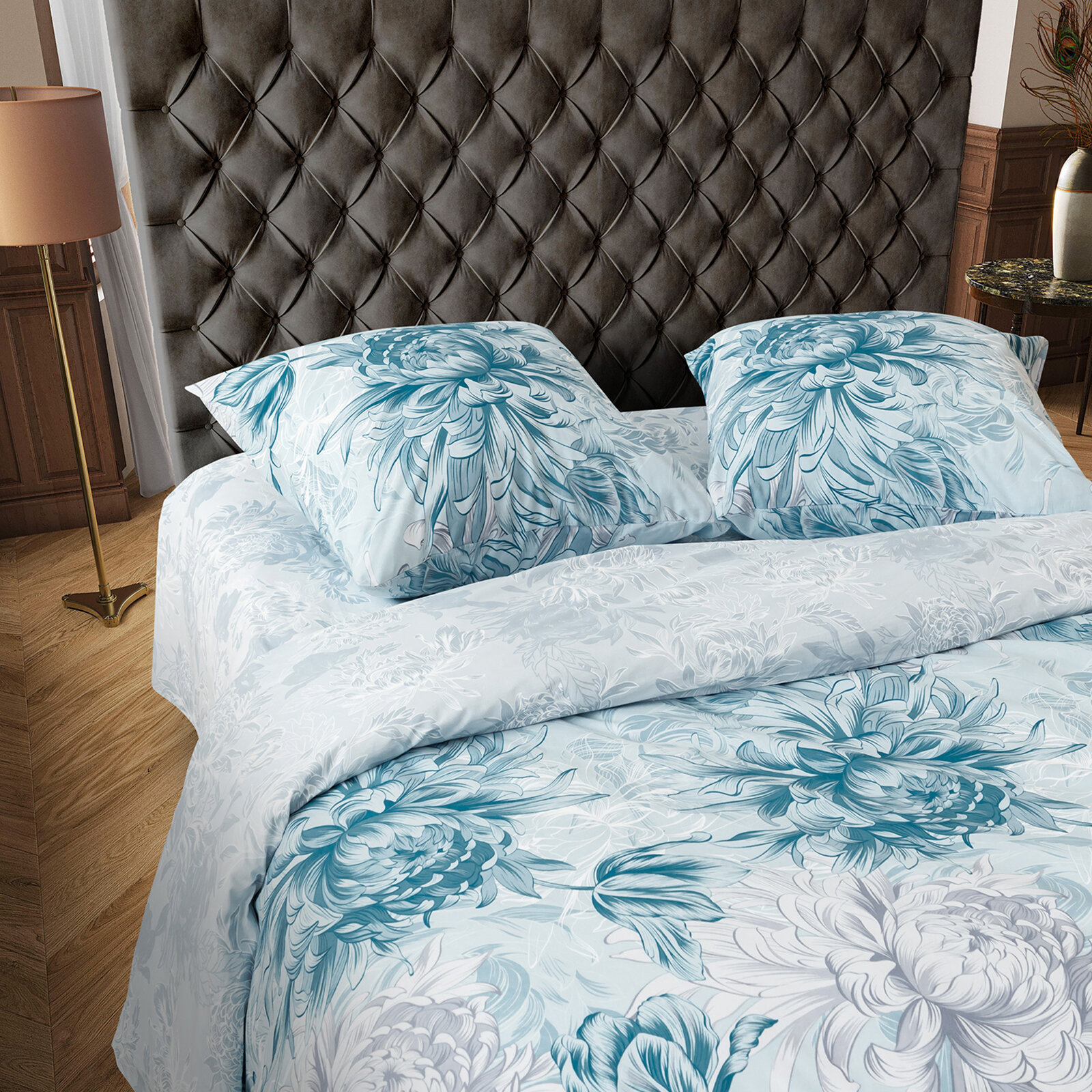 Постельное белье 2 спальное Mia Cara, Перкаль, 4 нав. (50х70-2шт; 70х70-2шт), на резинке, Лазурный берег