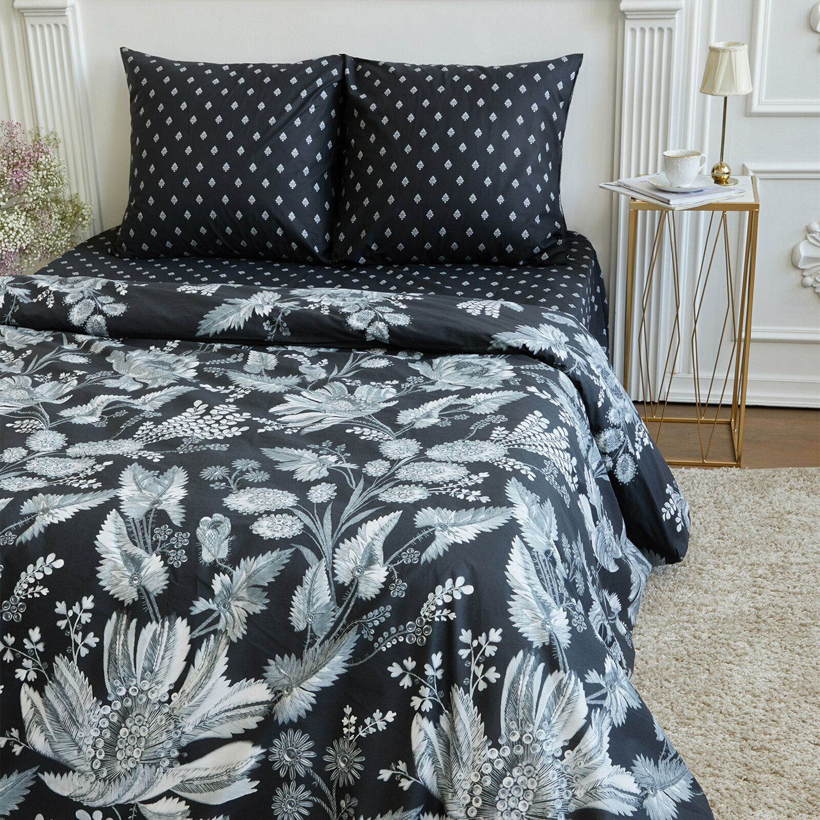 Постельное белье Евро Mia Cara, Перкаль, нав. 70х70, Таинственный сад, темно-фиолетовый