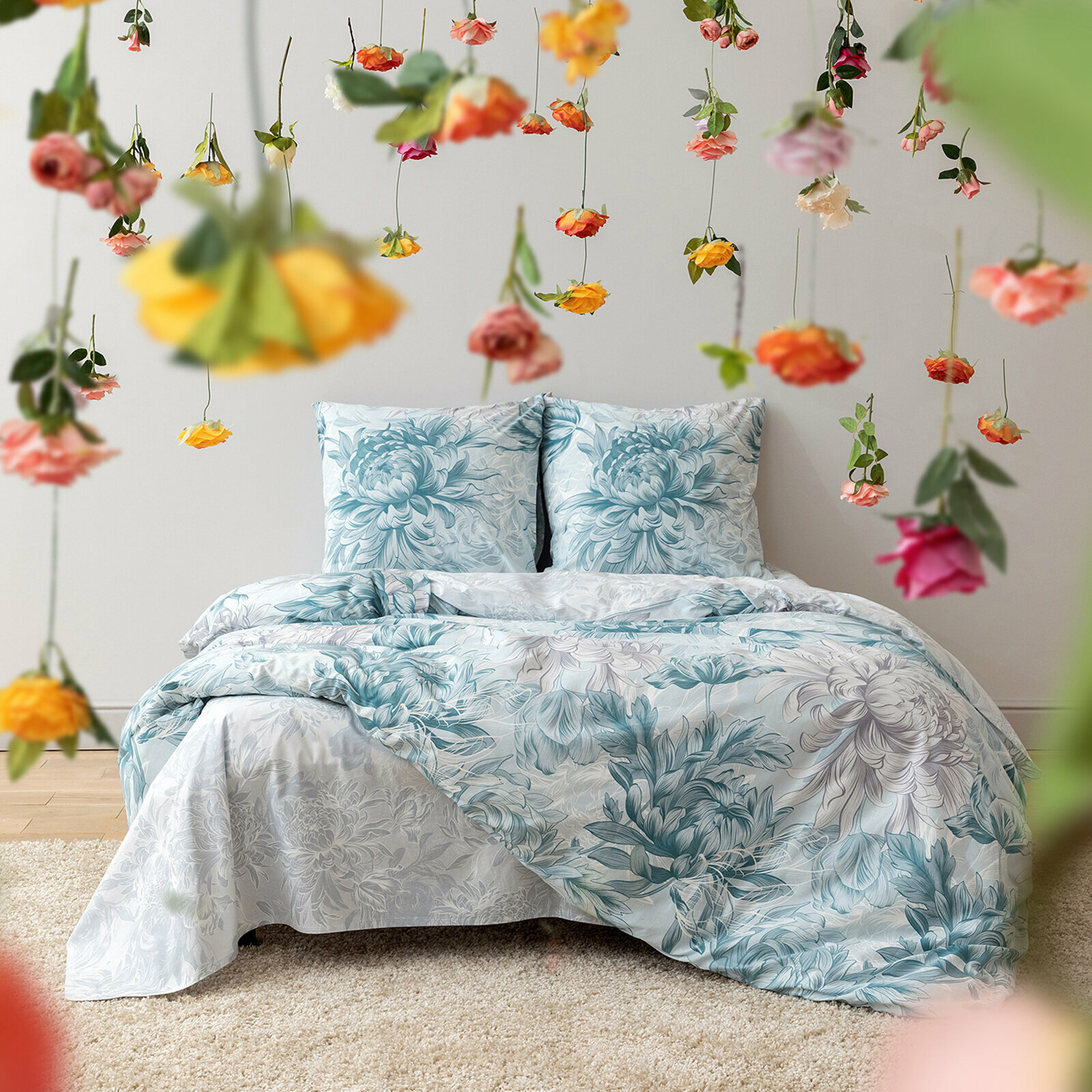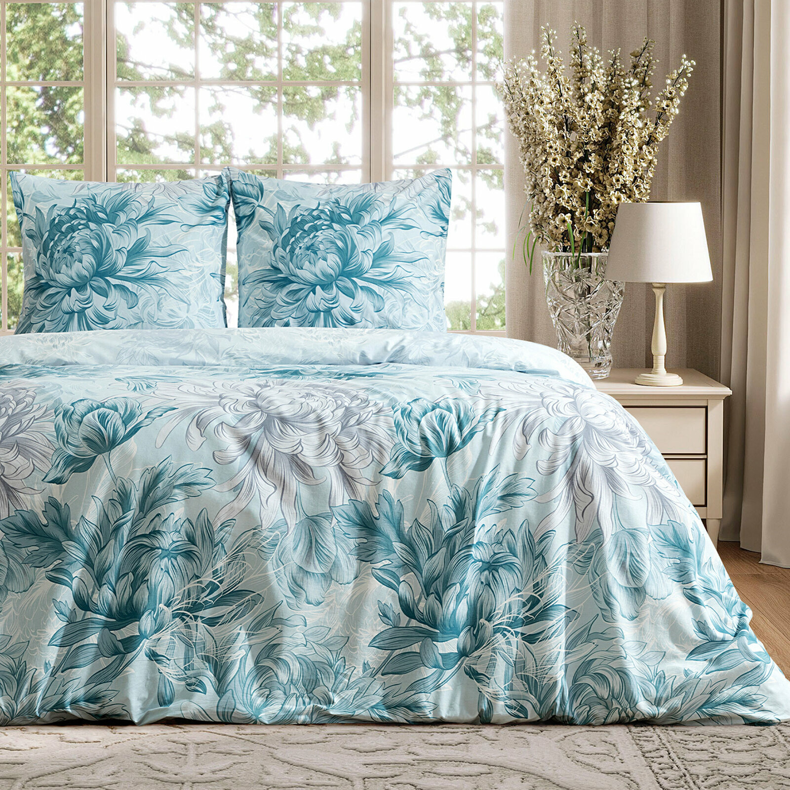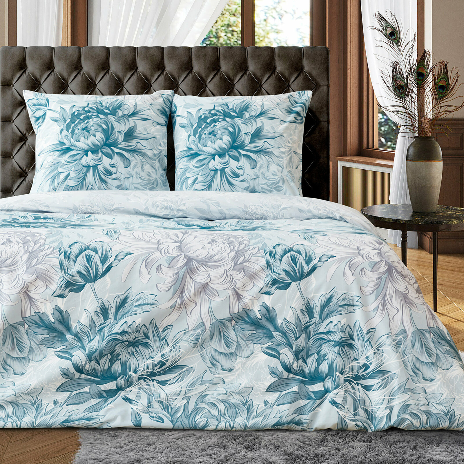 Постельное белье 1.5 спальное Mia Cara, Перкаль, нав. 70х70, Чарующий сад, пастельно-бирюзовый