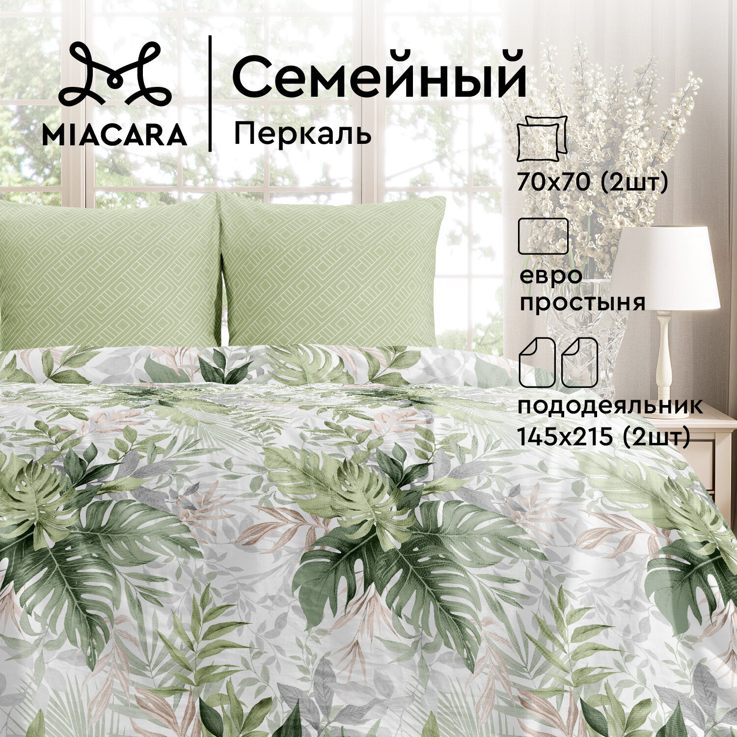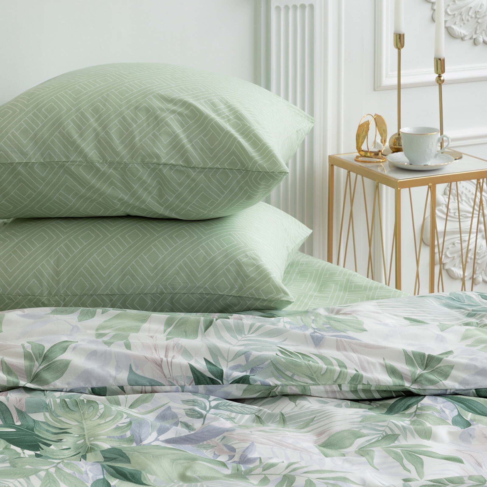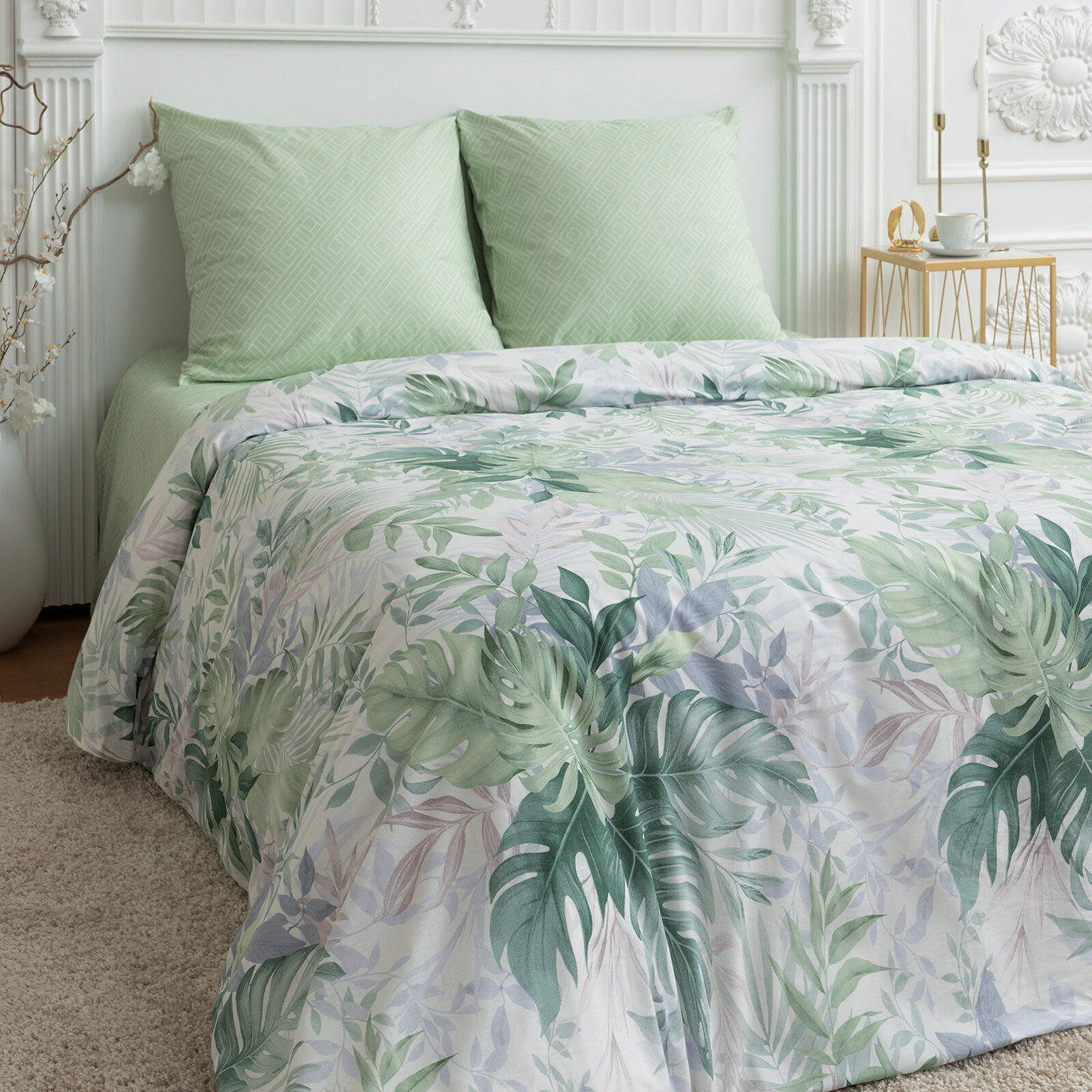 Постельное белье семейное Mia Cara, Перкаль, нав. 70х70, Таинственный сад, зеленый