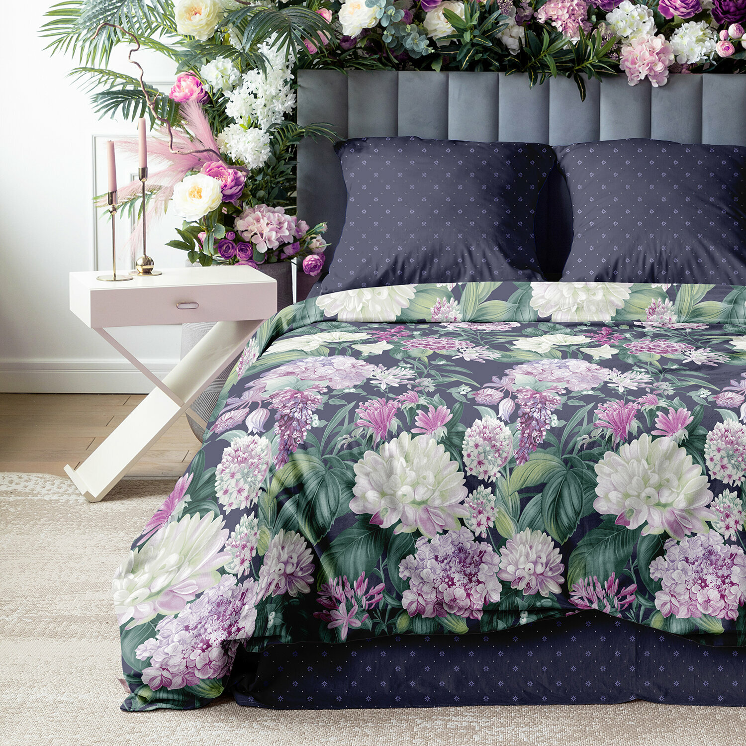 Постельное белье семейное Mia Cara, Перкаль, нав. 70х70, Таинственный сад, темно-фиолетовый