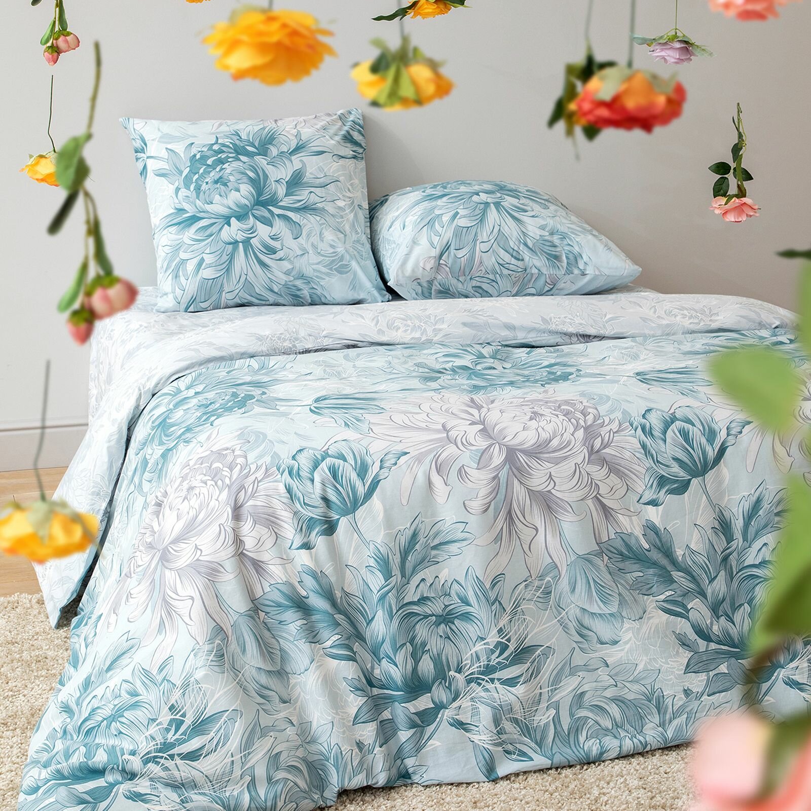 Постельное белье Евро Mia Cara, Перкаль, 4 нав. (50х70-2шт; 70х70-2шт), на резинке, Чарующий сад