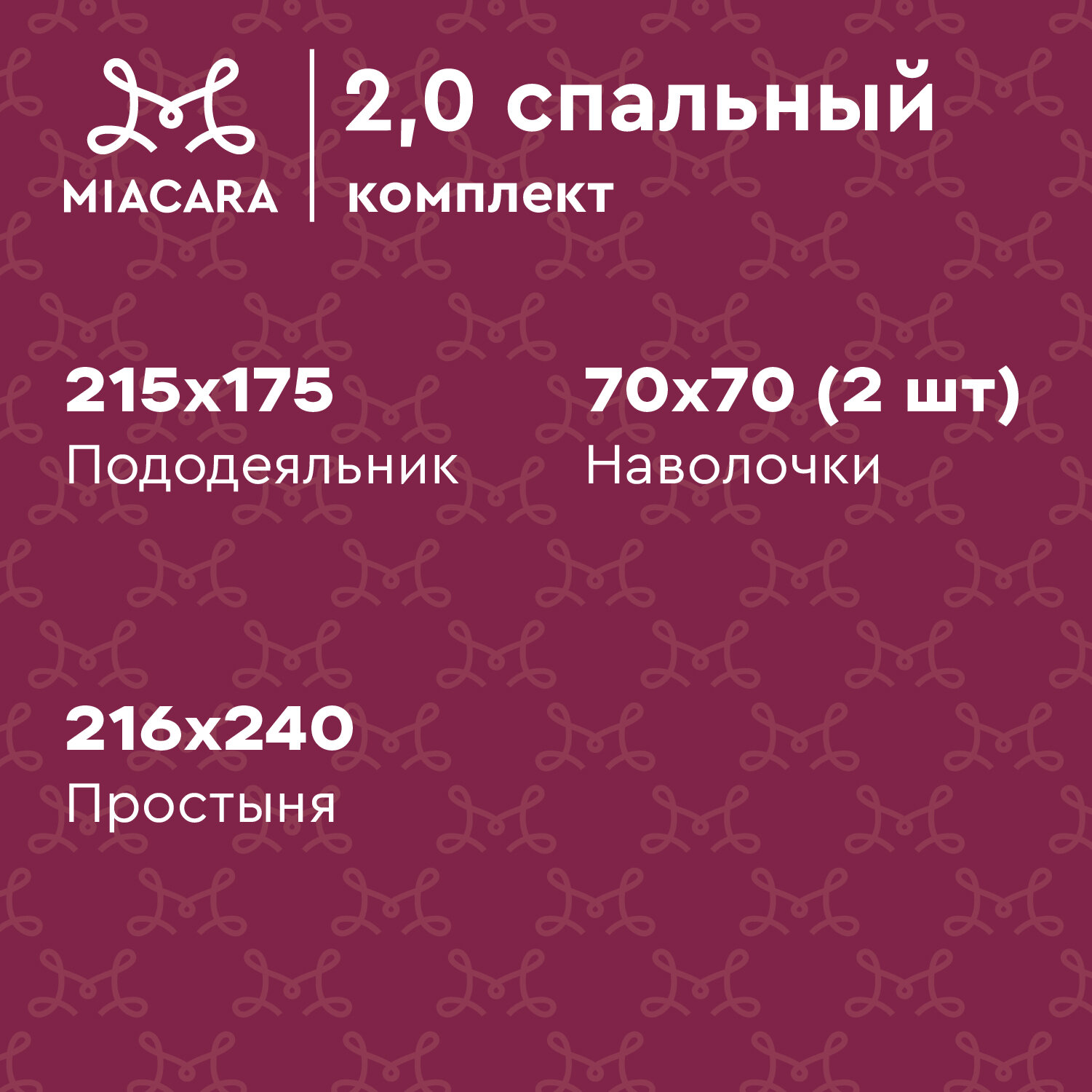 Постельное белье 2 спальное Mia Cara, Перкаль, нав. 70х70, Виченца