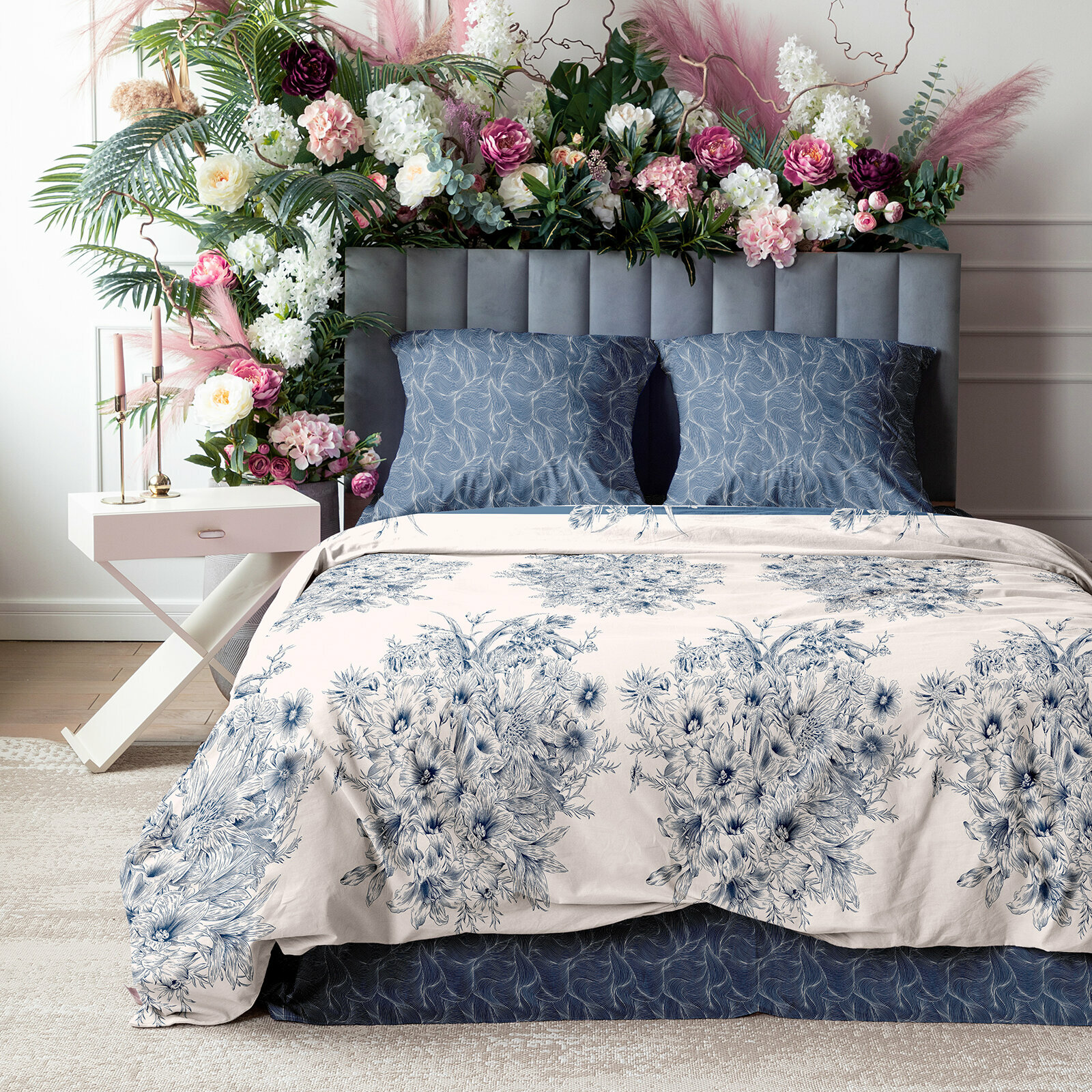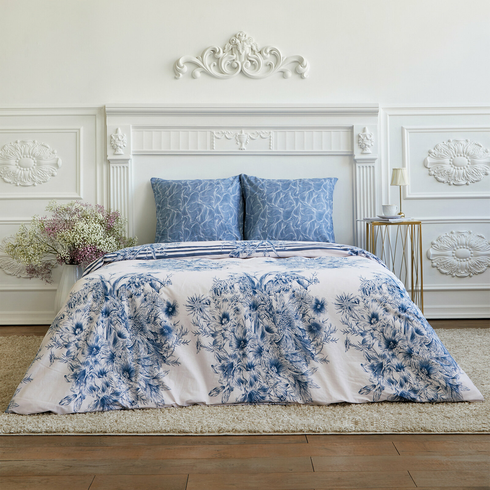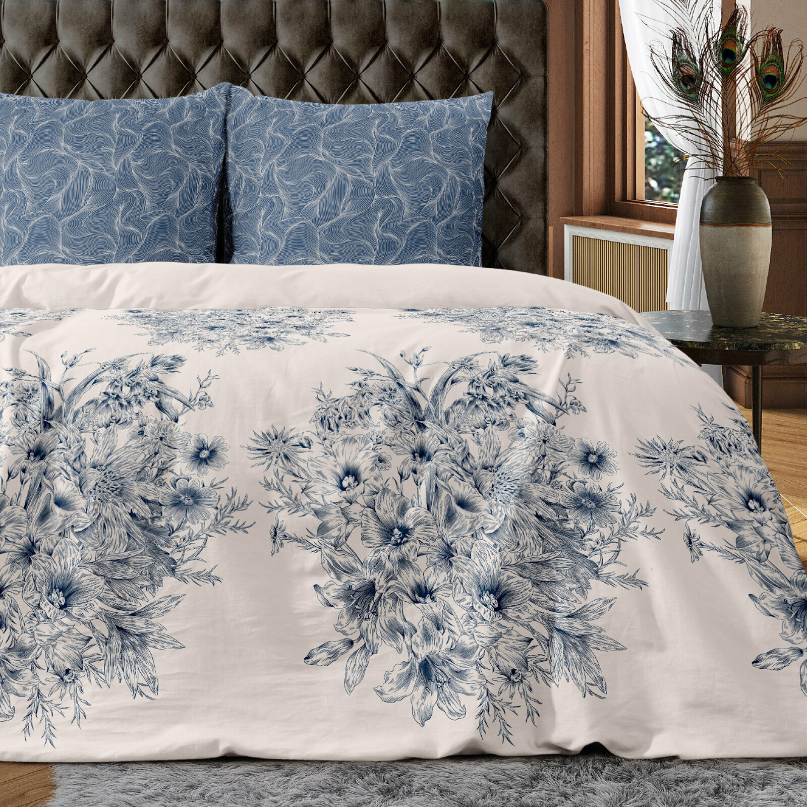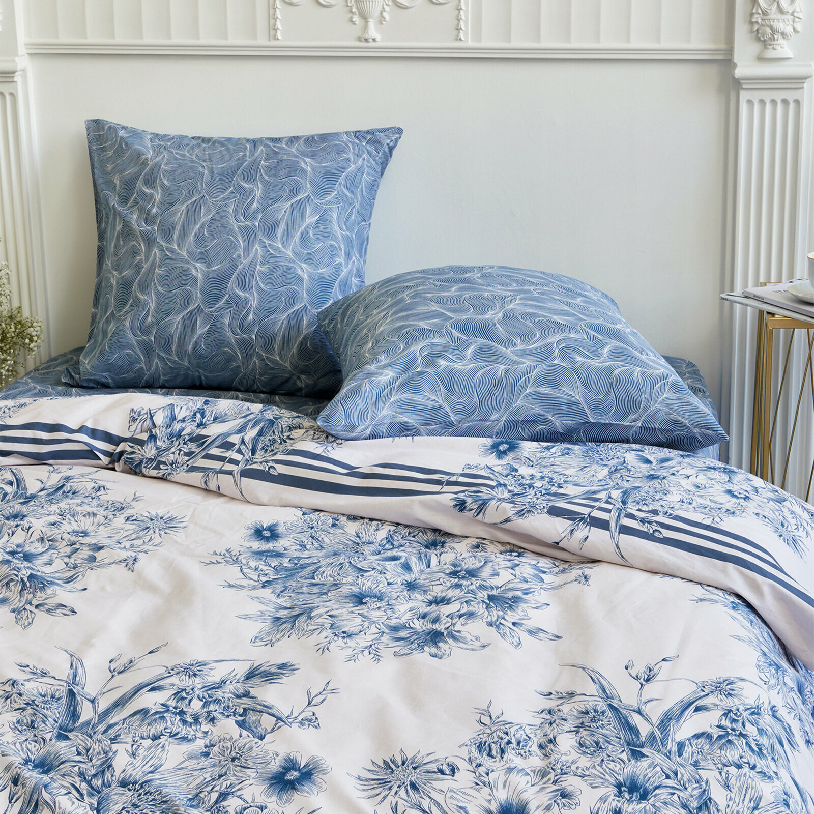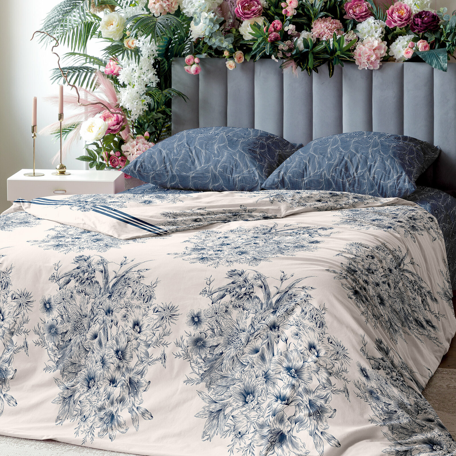 Постельное белье Евро Mia Cara, Перкаль, нав. 70х70, Чарующий сад, пастельно-бирюзовый