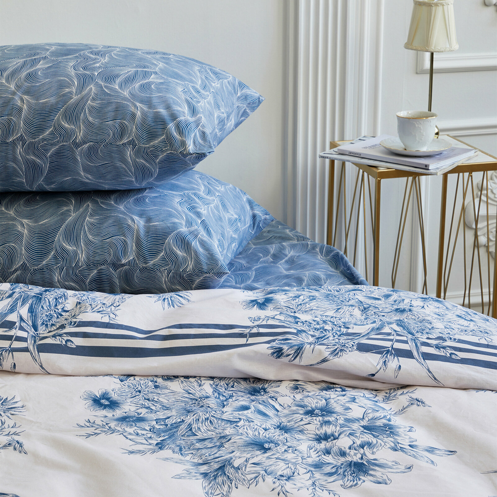 Постельное белье Евро Mia Cara, Перкаль, нав. 70х70, Лазурный берег