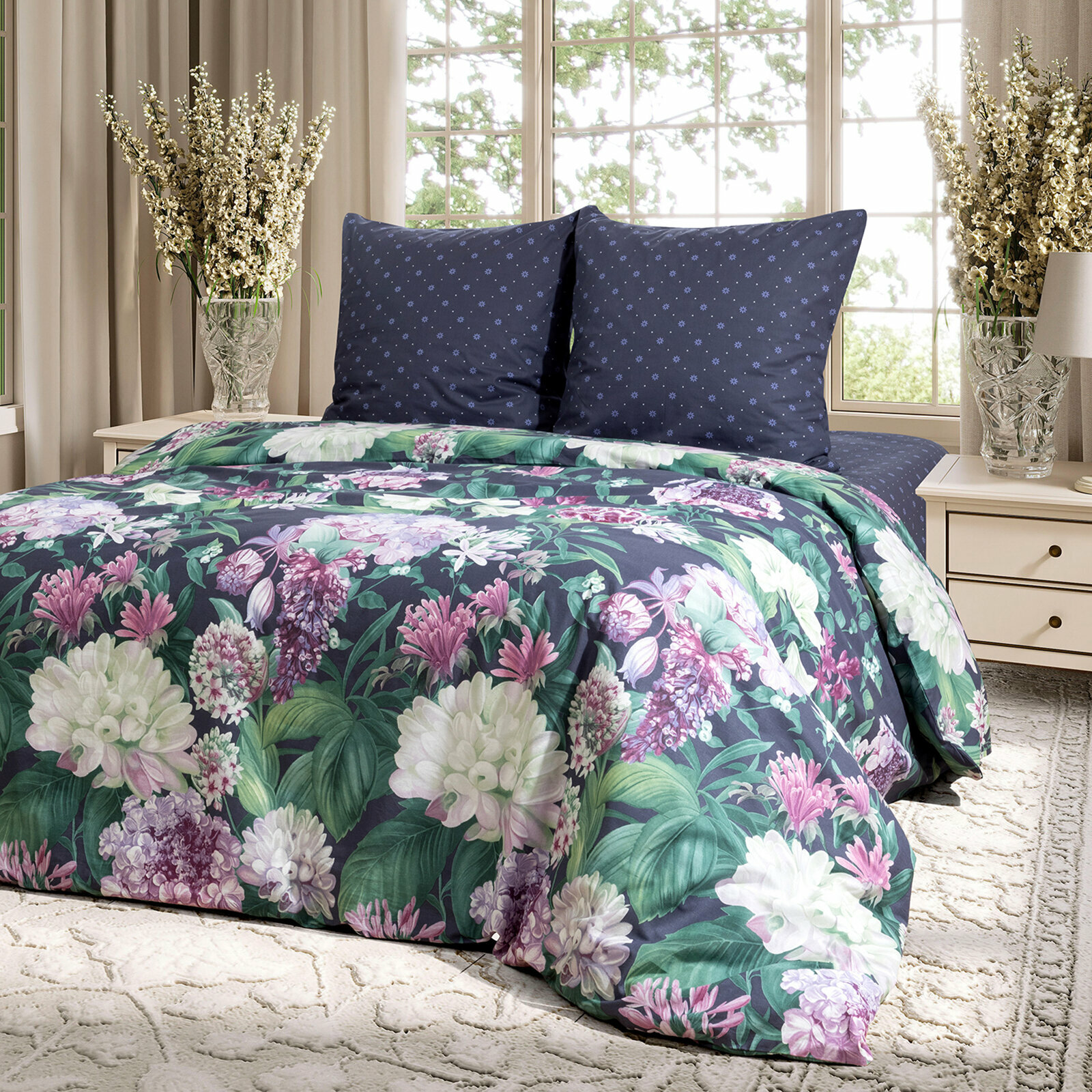 Постельное белье 1.5 спальное Mia Cara, Перкаль, нав. 70х70, Таинственный сад, темно-фиолетовый