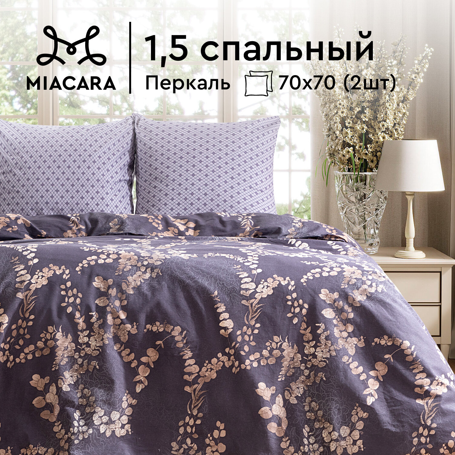 Постельное белье 1.5 спальное Mia Cara, Перкаль, нав. 70х70, Таинственный сад ,фиолетовый