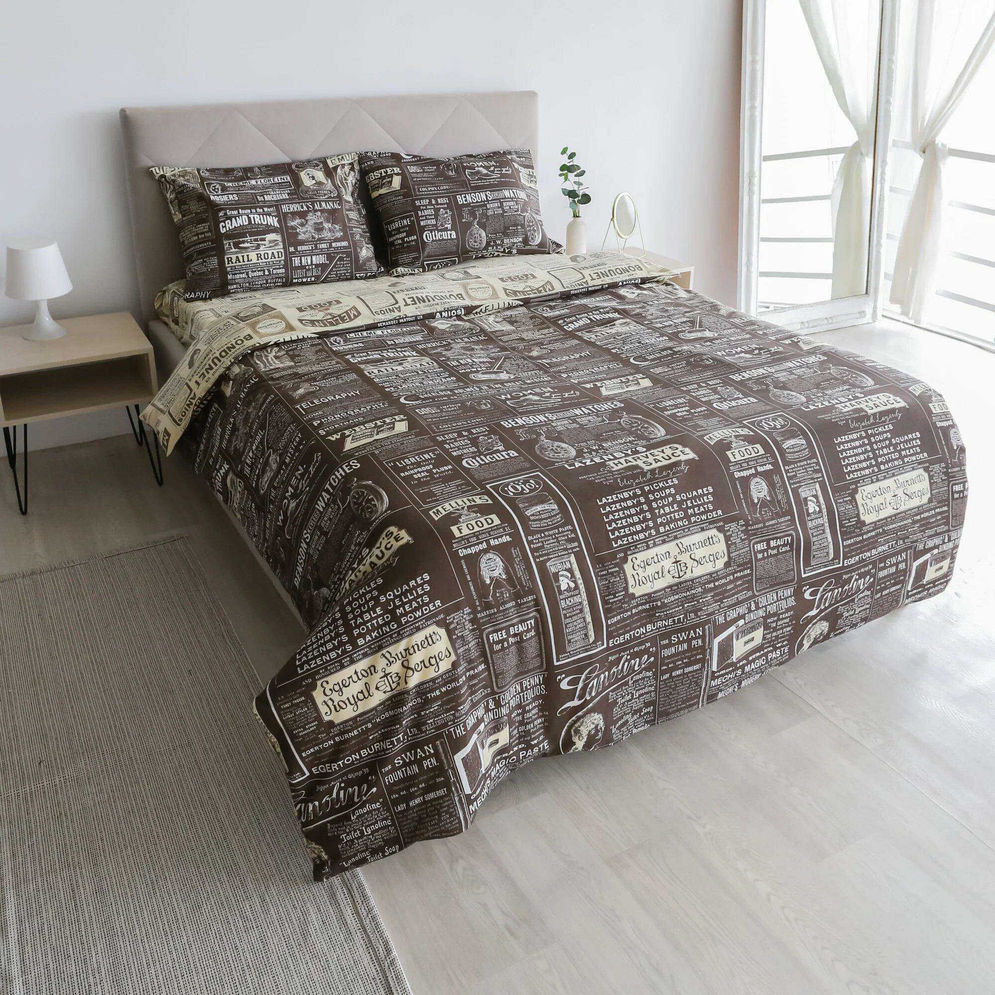 КПБ. Бязь. "Газета", 100% хлопок. 2-спальное с евро простынью
