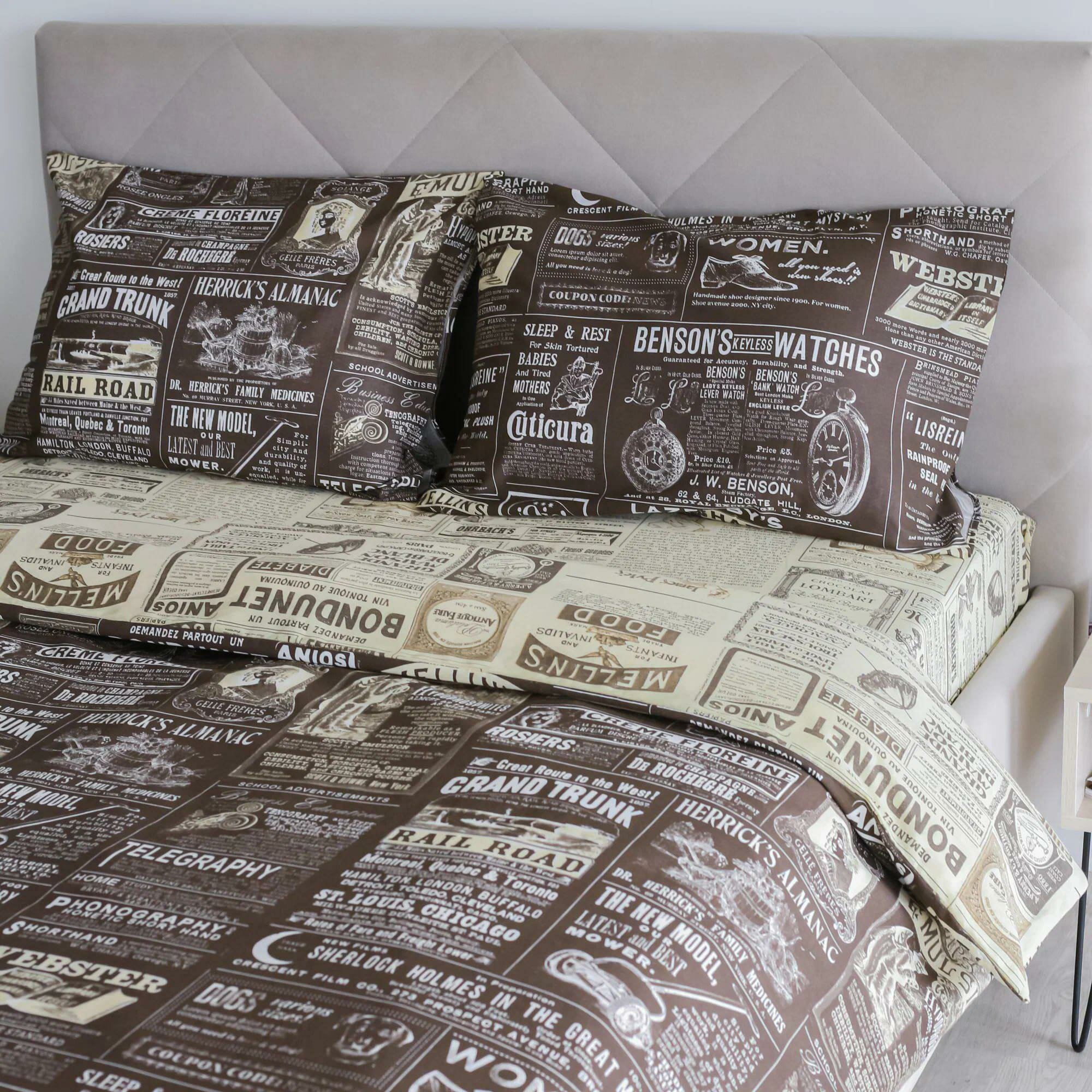 КПБ. Бязь. "Газета", 100% хлопок. 1,5-спальное интересное: