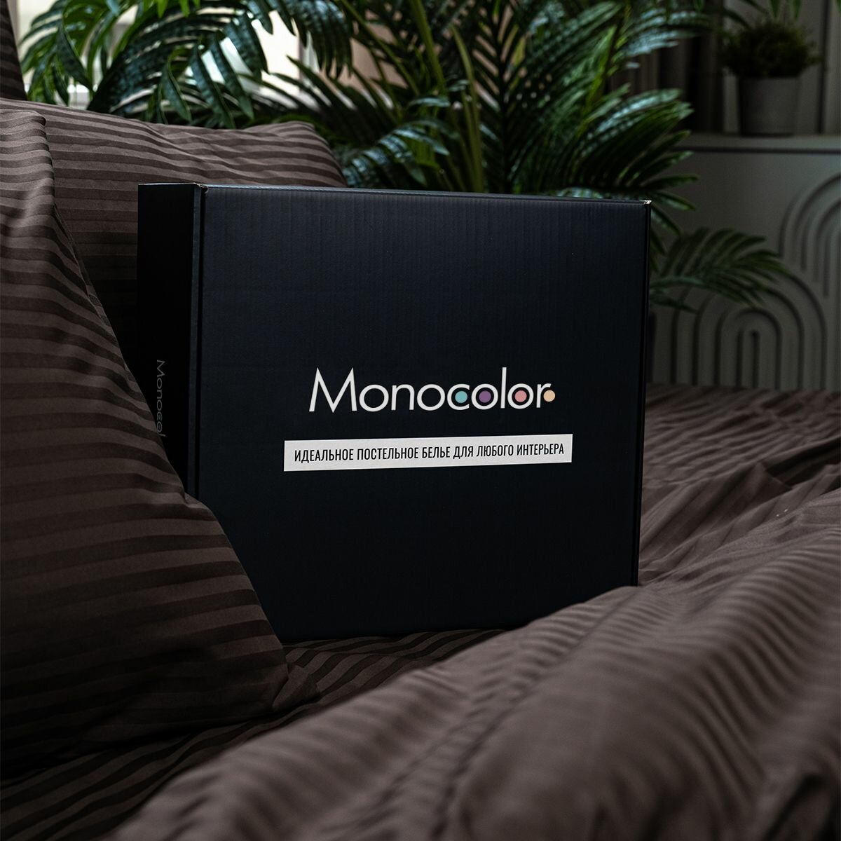 Комплект постельного белья 2-спальный размер Monocolor Страйп сатин 100% хлопок / 2 наволочки 50*70 /шоколад /премиум качество
